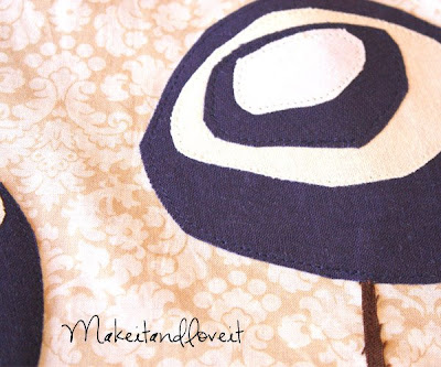 To finish off the center of the tablecloth, I appliqued some flower pieces/stems to the top and stitched them in place. Do whatever looks good to you. Or use the flower idea. Hmmm… or just leave it plain.