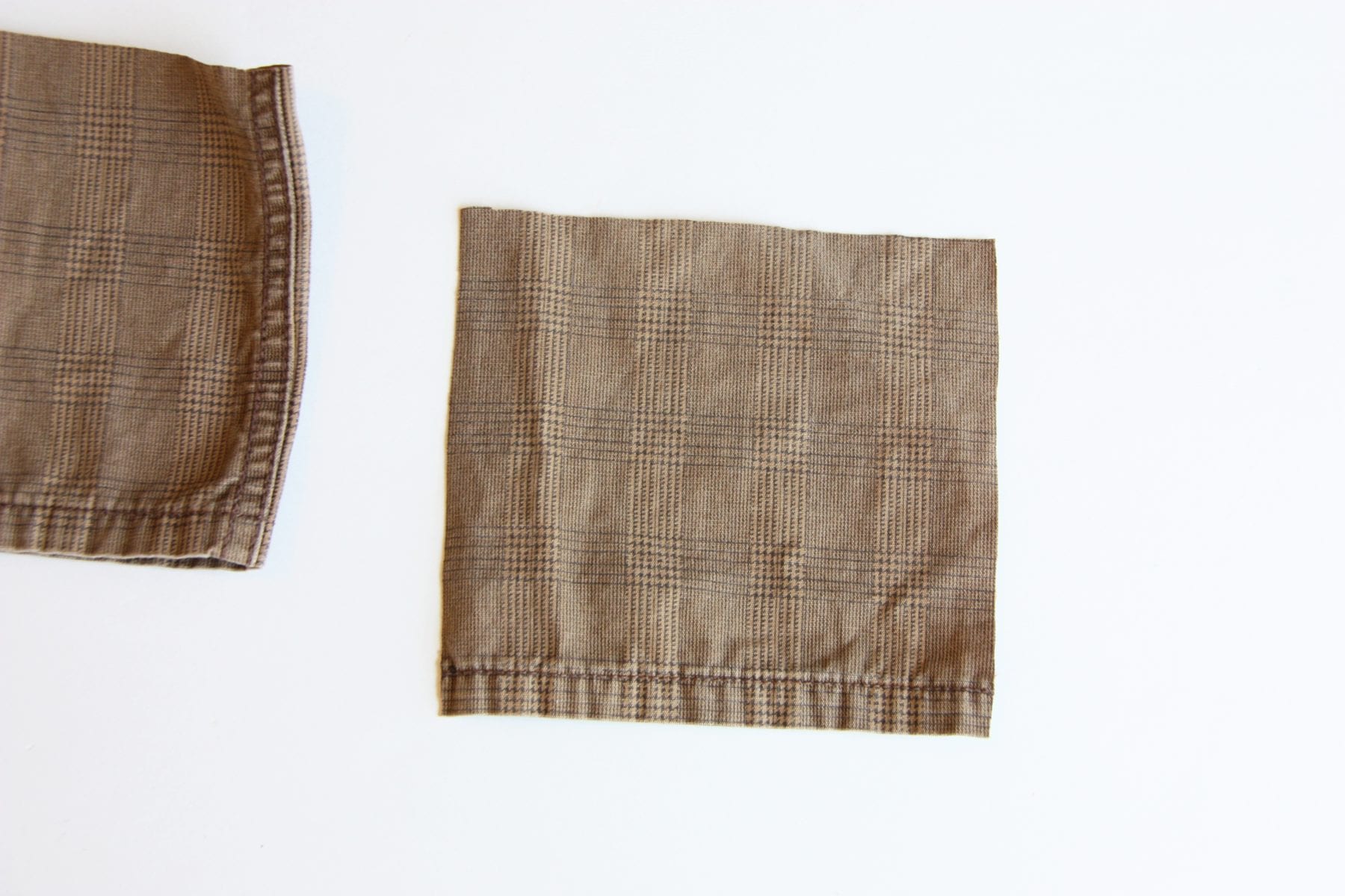 Now, grab your leftover pant leg that you cut off, and cut out a nice sized square for the main pocket piece. I made mine the same exact width as the leftover pant leg and then just as tall. I kept the bottom hem of the pant leg for my pant leg……but you don’t have to (It makes it harder to have too much bulk for the big pleat, so you may want to cut it off if it’s a thick hem.)