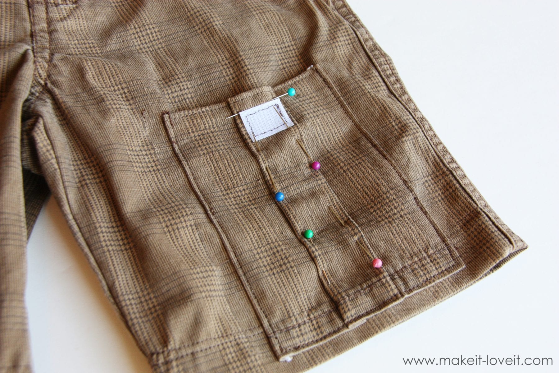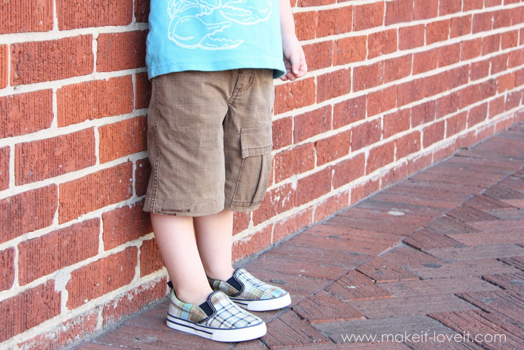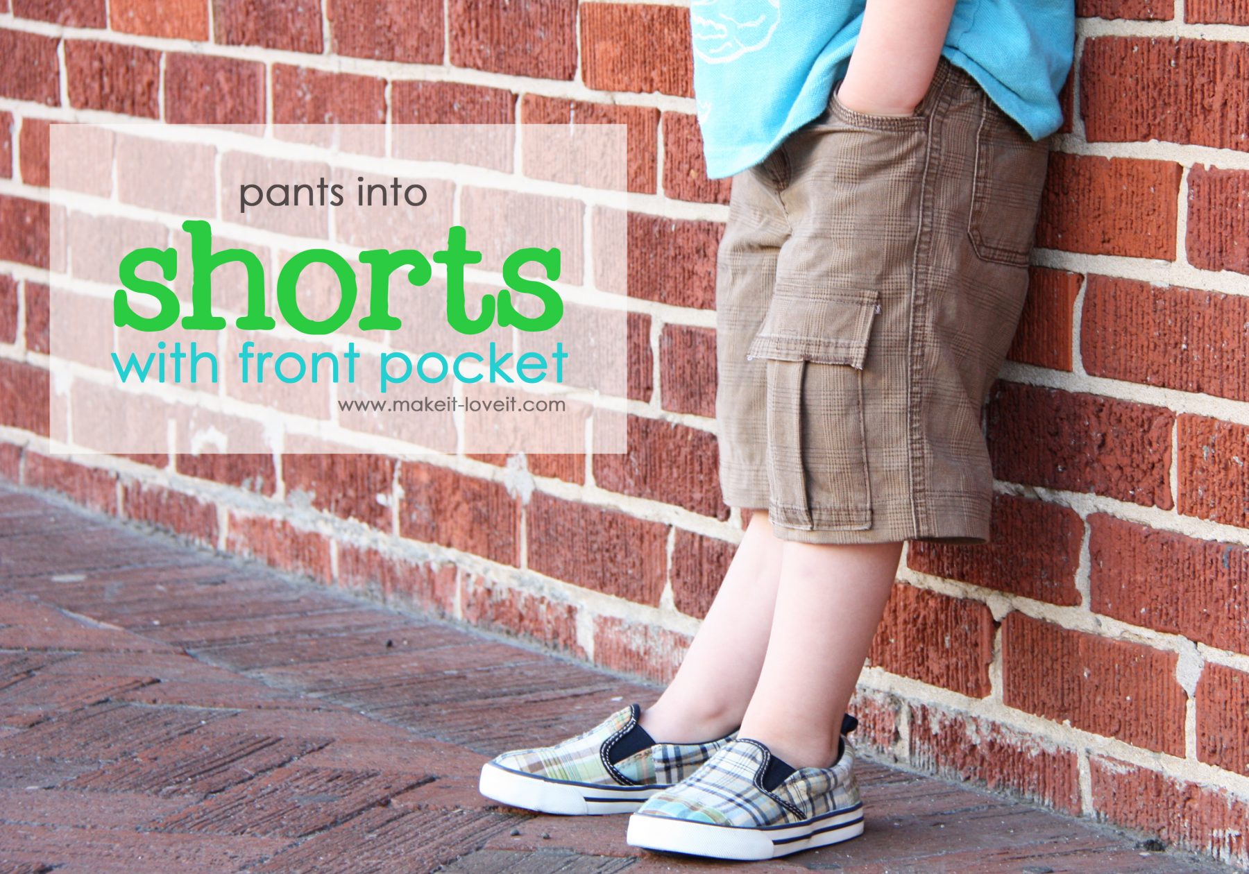 I was about to give away some of my little boy’s pants, because they were too short…..but decided to chop them off instead.