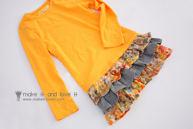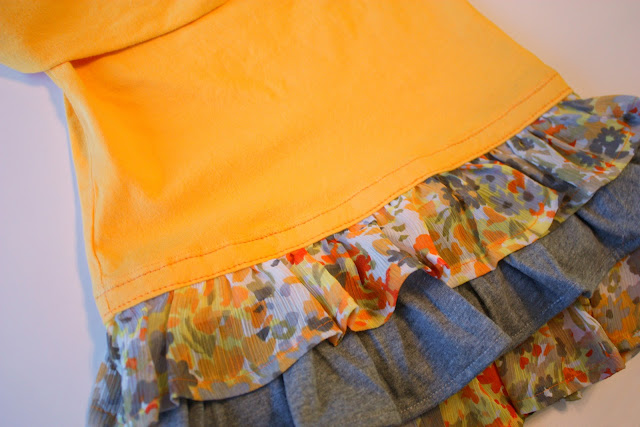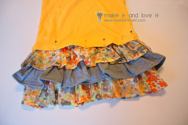 Transforming a t-shirt into a dress by adding a few ruffles, sure makes a girl happy herself right up.