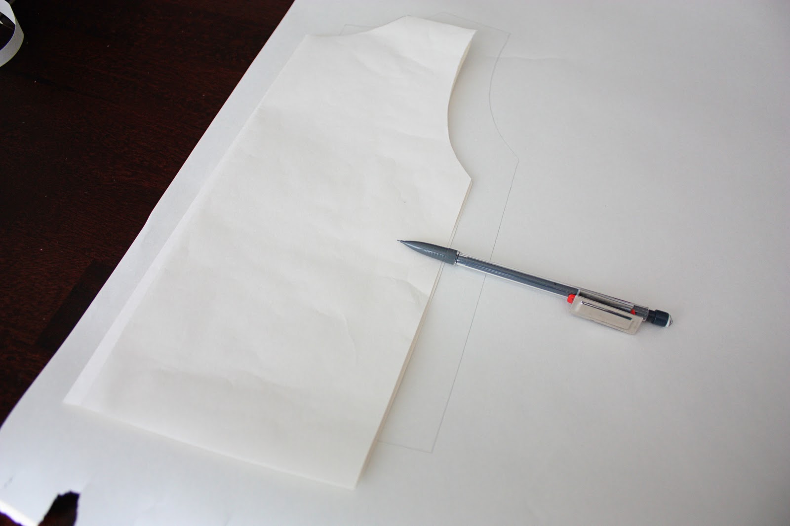 Then fold this pattern piece in half and trace around the entire thing onto a new piece of paper.  This will be used as a reference for your 2 front pieces.