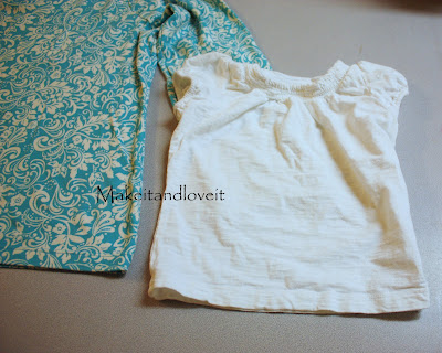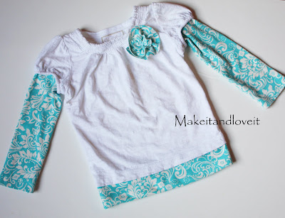 Well, I transformed a short sleeved shirt into a long sleeved for our little guy……but I needed a girly one too. And this time I had an old shirt to use for the sleeves and bottom, so really, this cost me nothing.