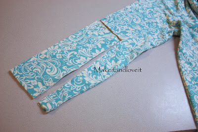 And I cut the sleeves out of the sleeves of the bigger shirt, so that I wouldn’t have to hem the bottom of the sleeves.