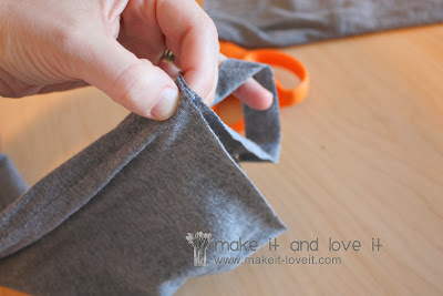 I folded them in half lengthwise and sewed about 1/4 inch from the edge. I left one end open and then created a V-shape at the other end.