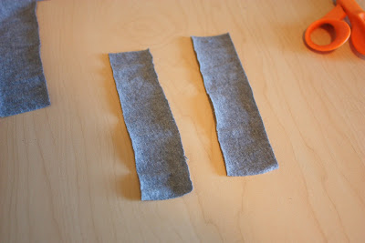 Then from some of the scraps from the sleeves that I cut off, I cut two strips of fabric that were 1.5 x 6.5 inches.