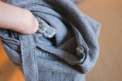 Then attached the backside of a snap to the inside of the sleeve, right below the seam where you attached your strip. Make sure to poke it through the strip and the shirt……making it extra sturdy.