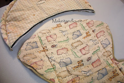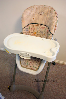 **And I forgot to take a picture, but I made seams along the folds of the cover. So wherever the cover would be fold while sitting in the high chair, I made a seam so that it would fit nicely in the seat. Just look at your old cover, and match the old seams.**