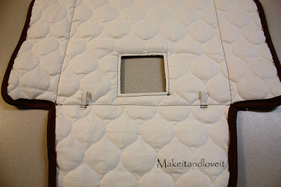 Then I cut a piece of quilted batting (quilt backing?…..I’m not sure of the real name) the same size as my main piece. Make sure to cut the hole out too.