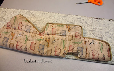 And then sew bias tape around the entire cover, making sure to include all of the edges of the back flap and its ends. Also, sew very slowly around all of the curves….they can be tricky with the bias tape.