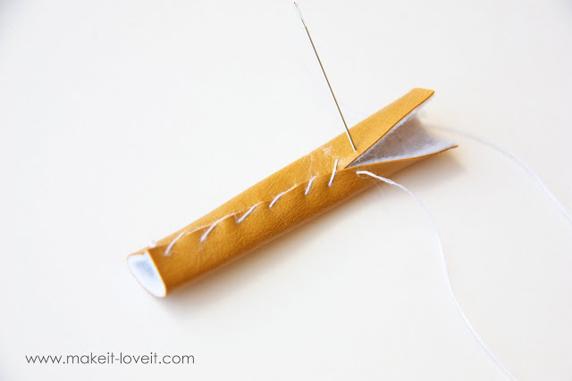 Then tuck under the end and hand stitch it in place from below…..hiding your stitches.
