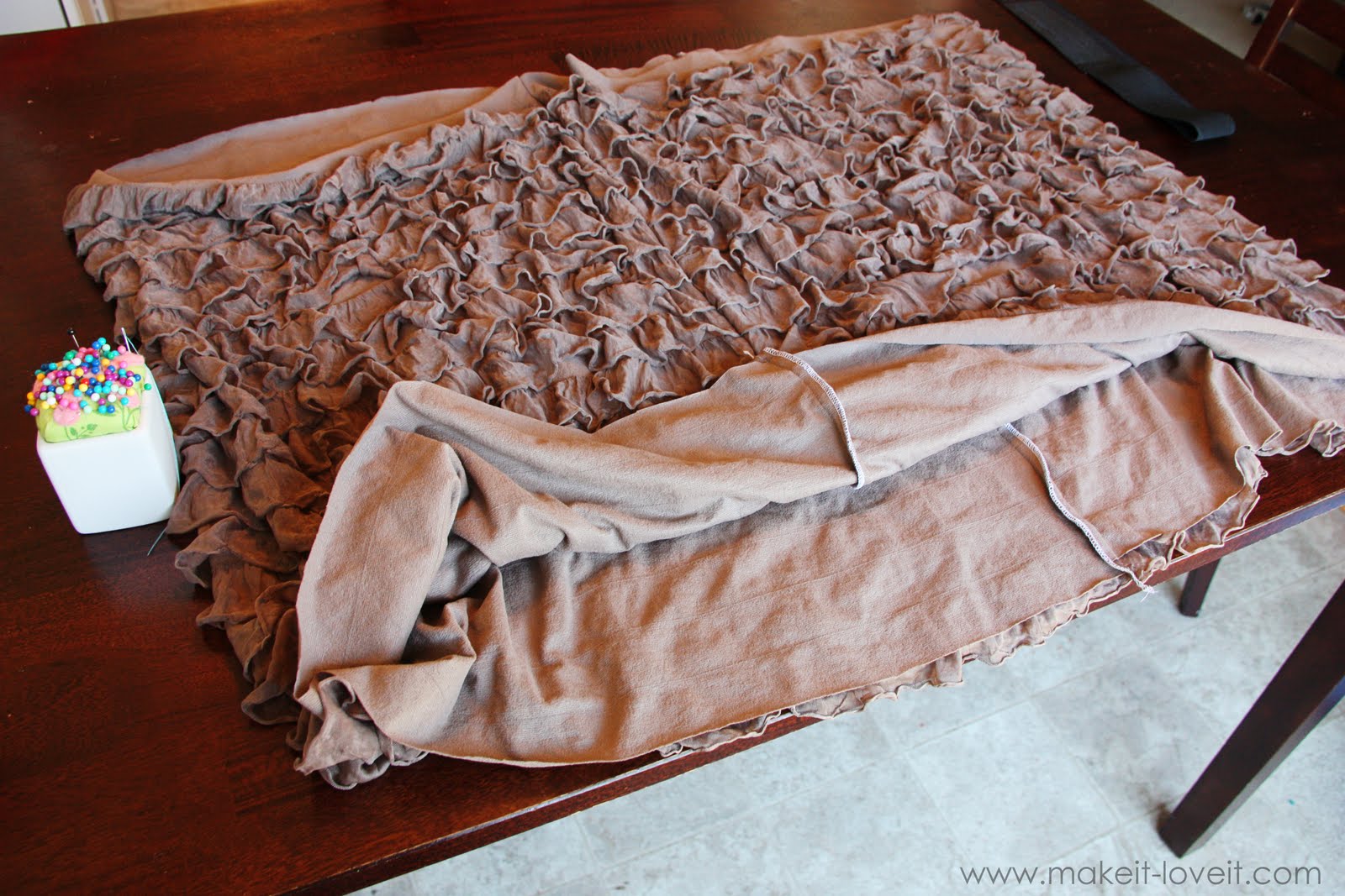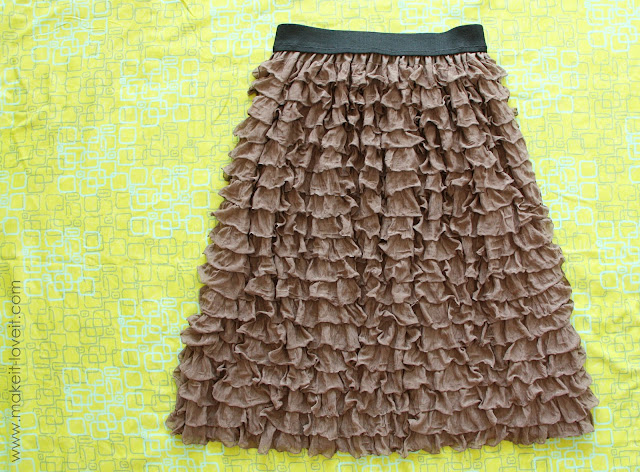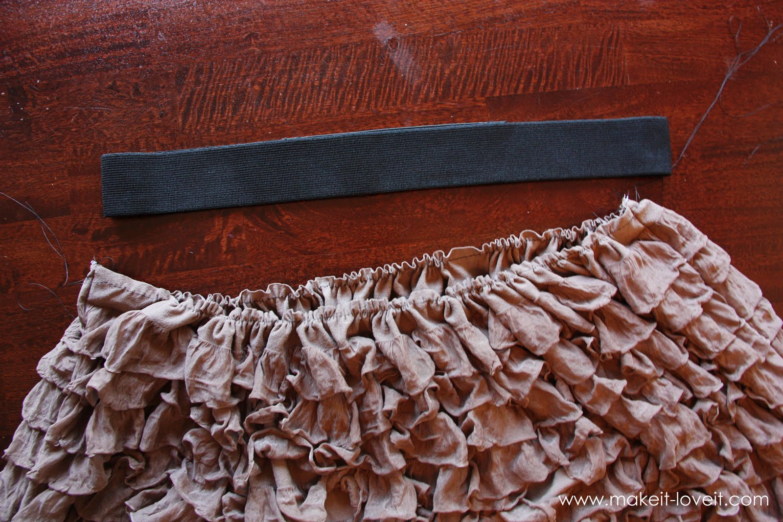 Basically, you’ll be sewing a piece of this ruffle fabric into a tube and putting an elastic band at the top.