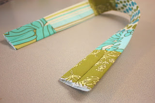 Do the same to the other side, tucking enough of the leftover fabric under to make the strap smooth.