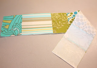 Then I cut out a variety of scraps that were at least 4 1/2 inches wide but were all different lengths. I sewed them all together but just made sure that the final sewn-together-strip was 24 1/2 inches long. Make sense?
