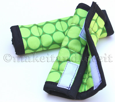 So that the seat belt doesn’t rub your neck raw. Especially nice for little kiddos. (But you could really make these any size.) We pulled out our bike trailer several weeks ago and plopped the two kiddos in but realized after a short ride, that the seat belt rubbed our little guy’s neck……and he hated it. Poor thing. (And another friend that lives nearby had the same problem and asked if I had an idea of how to make these little covers. Thanks for getting me thinking, Allison!)