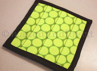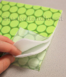 Okay, now cut out your 4 pieces of fabric and 4 pieces of batting. (I chose this thin stuff so that it would be more compact, easier to sew through, but still offer some padding.)