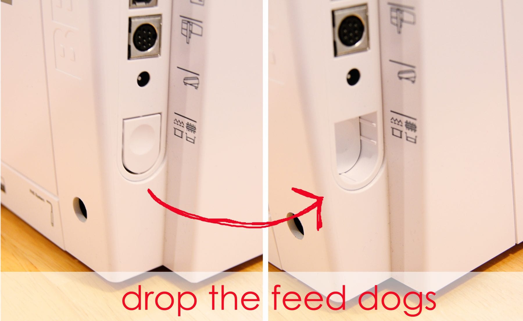 To get started, you need to drop your feed dogs so they’re out of the way.