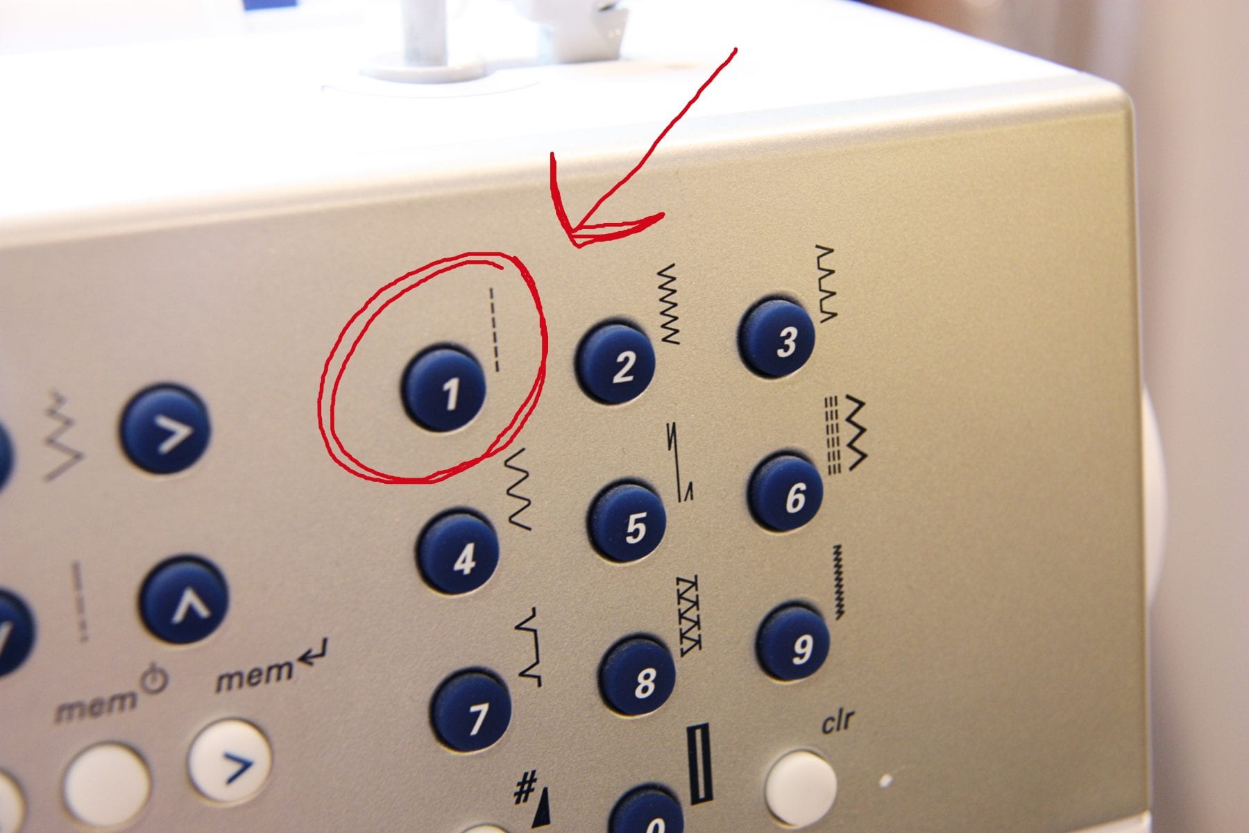 And at first, make sure that you are on the “straight stitch” setting.