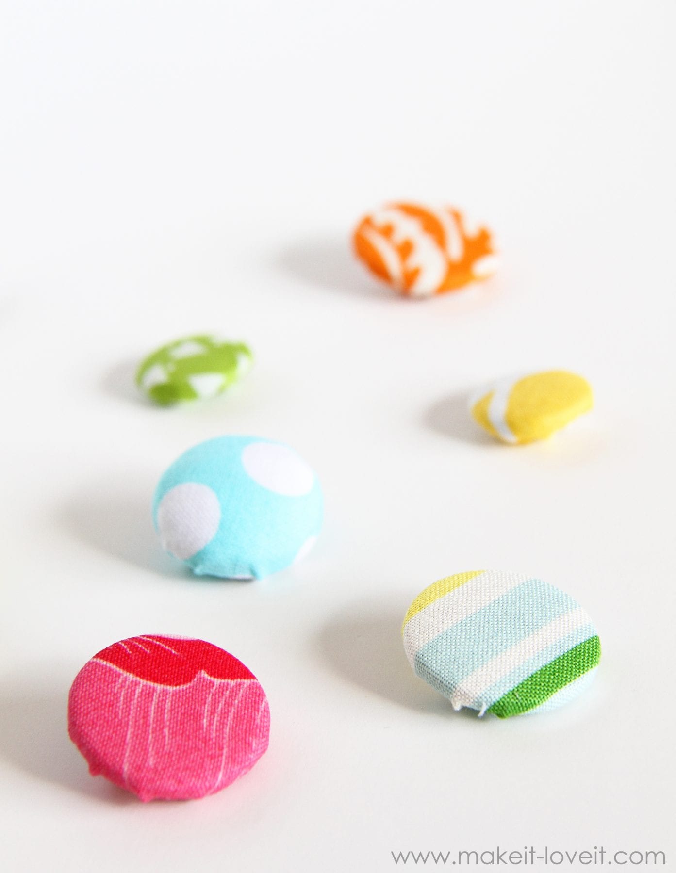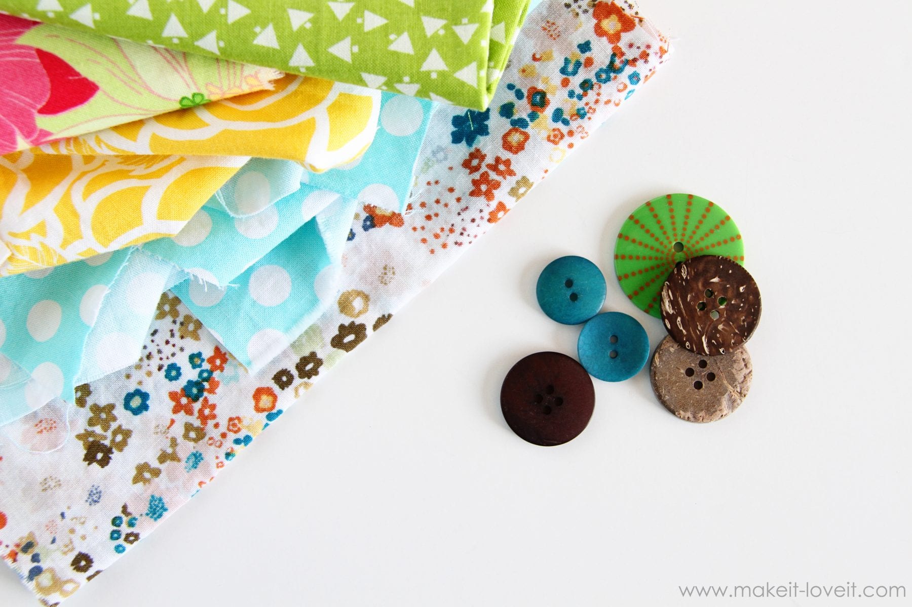 You’ll need some fabric scraps and some buttons. Whatever sized buttons that you need for your project.