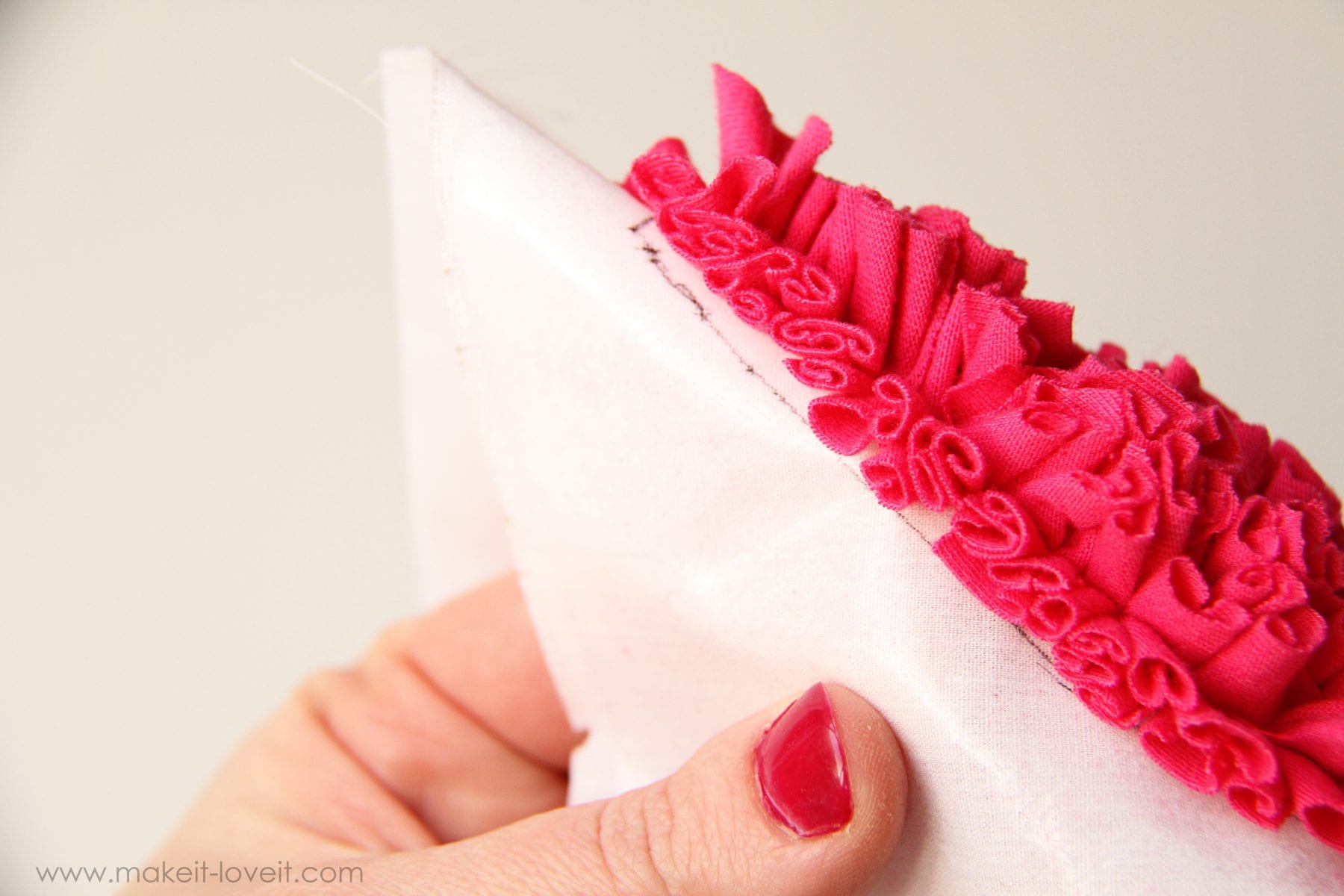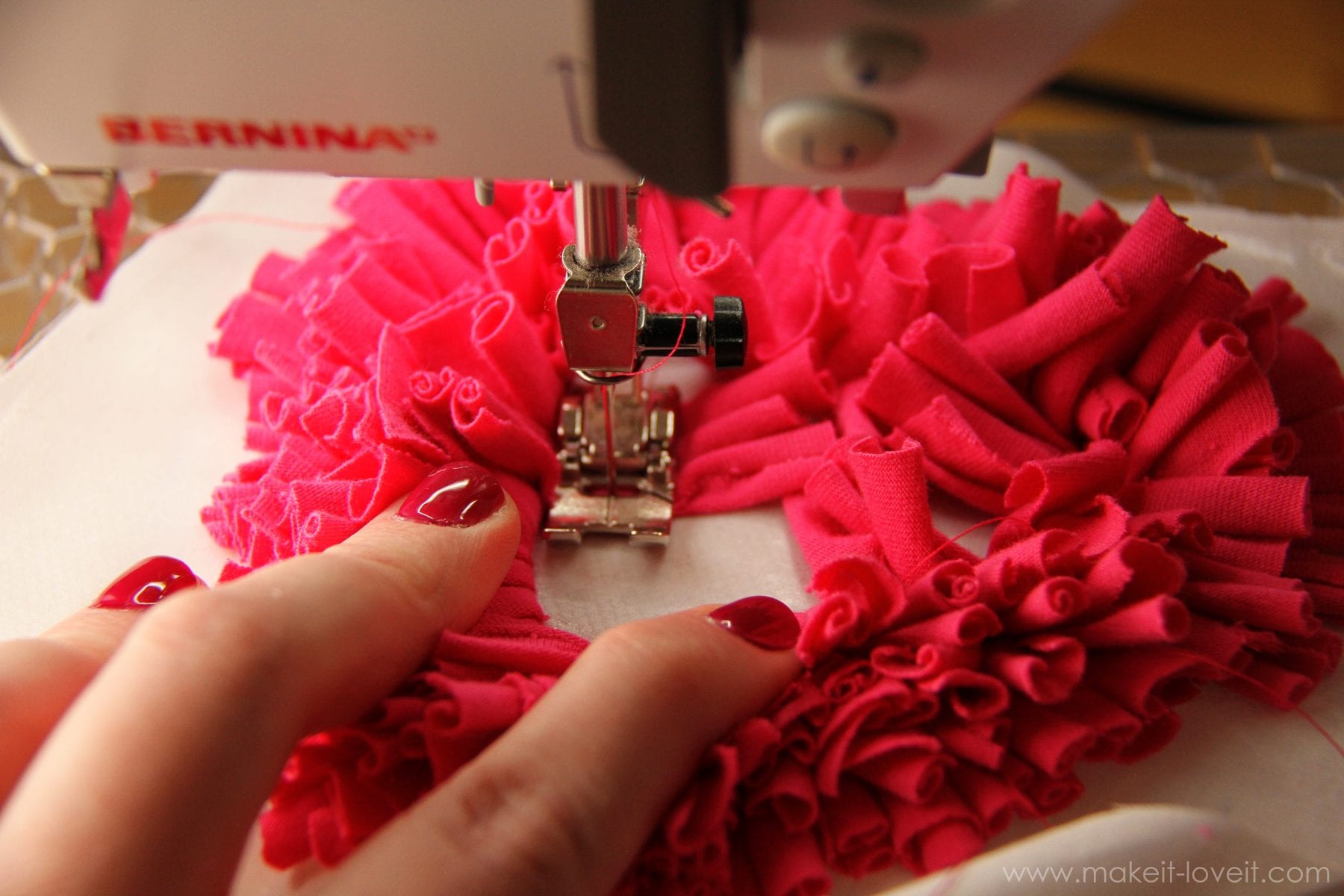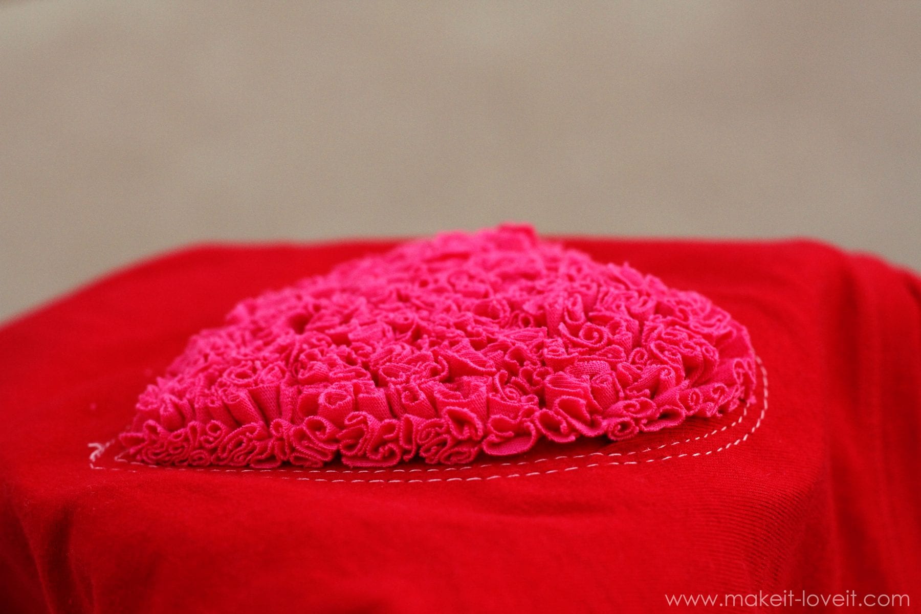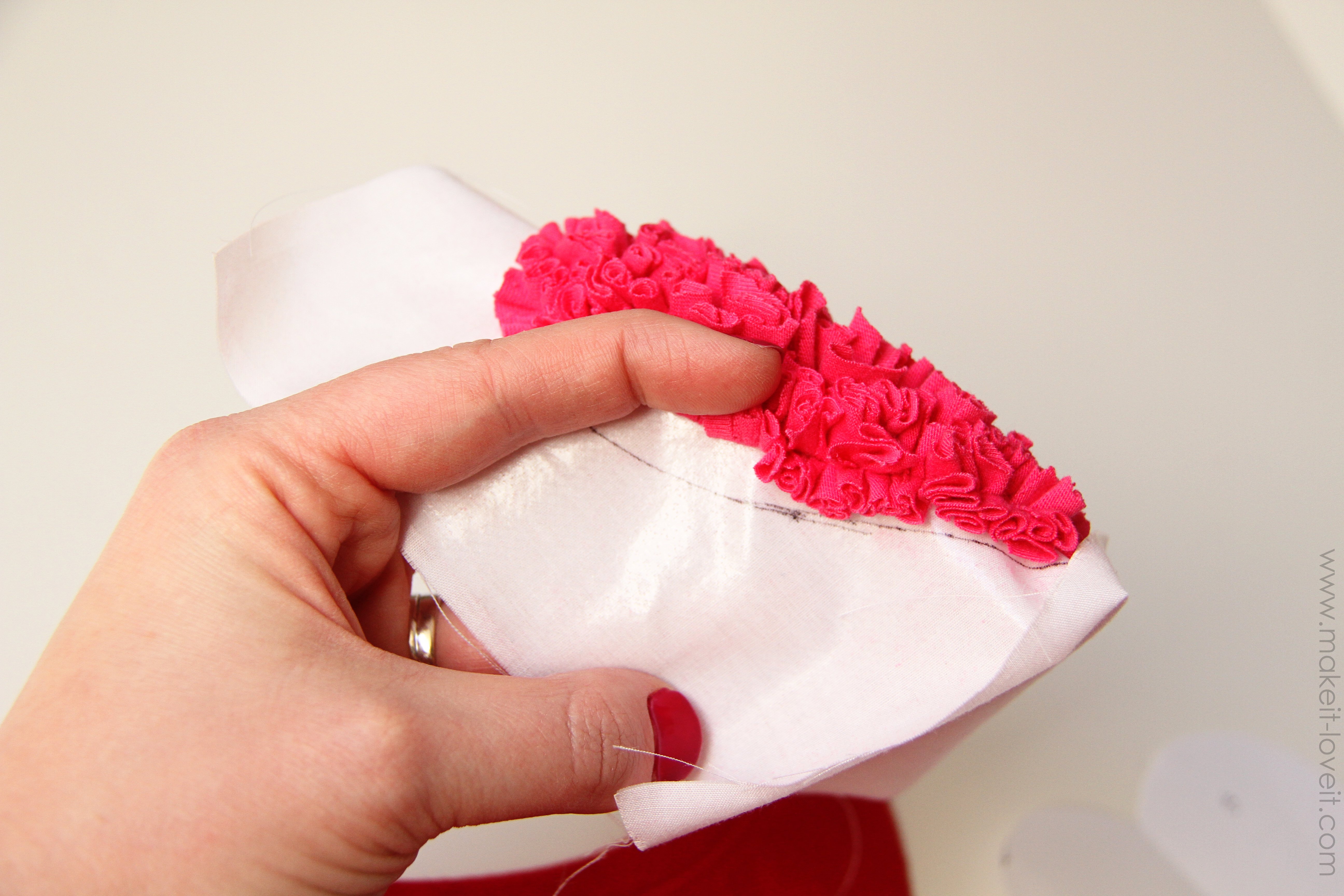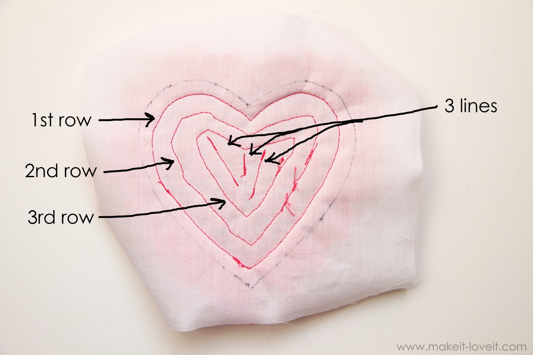 Then raise your stitch length (I made mine about a 4 out of 5) so that the stitches show better, and sew all the way around the heart 2 different times, about a 1/4 inch apart.