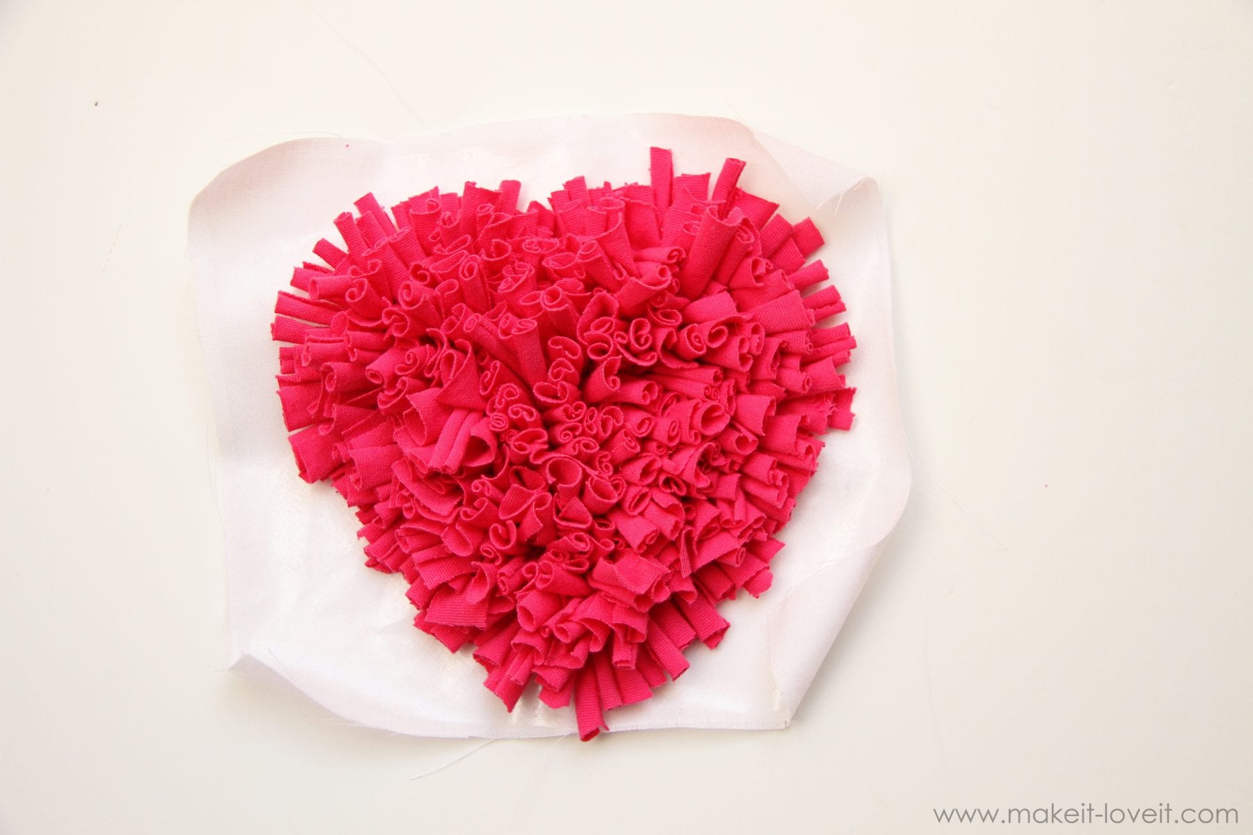 But oh, that heart.  Lots of little old T-shirt strips……sewn into a shaggy heart shape.  Oooh, I love texture.