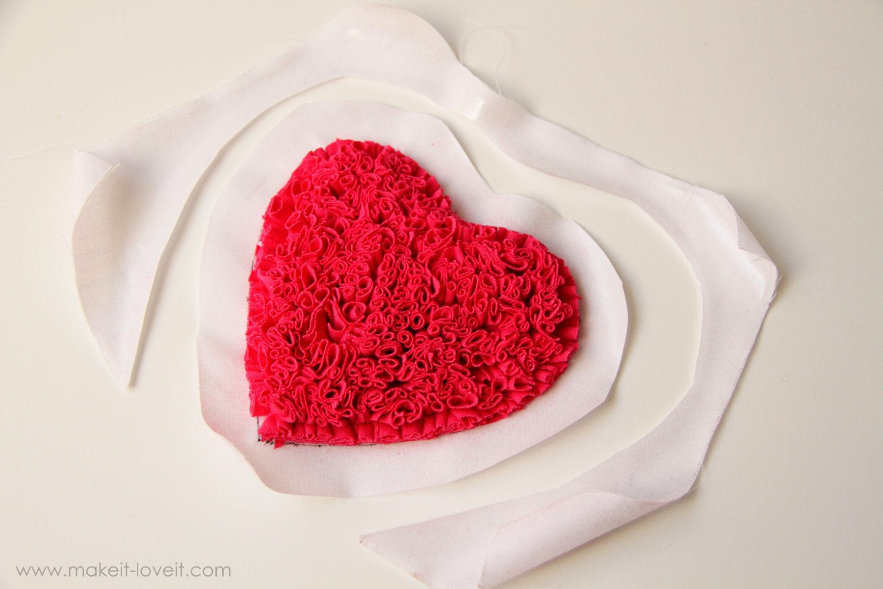 Now, cut away the excess fabric/adhesive layer, about 1 inch from the edge of the heart.