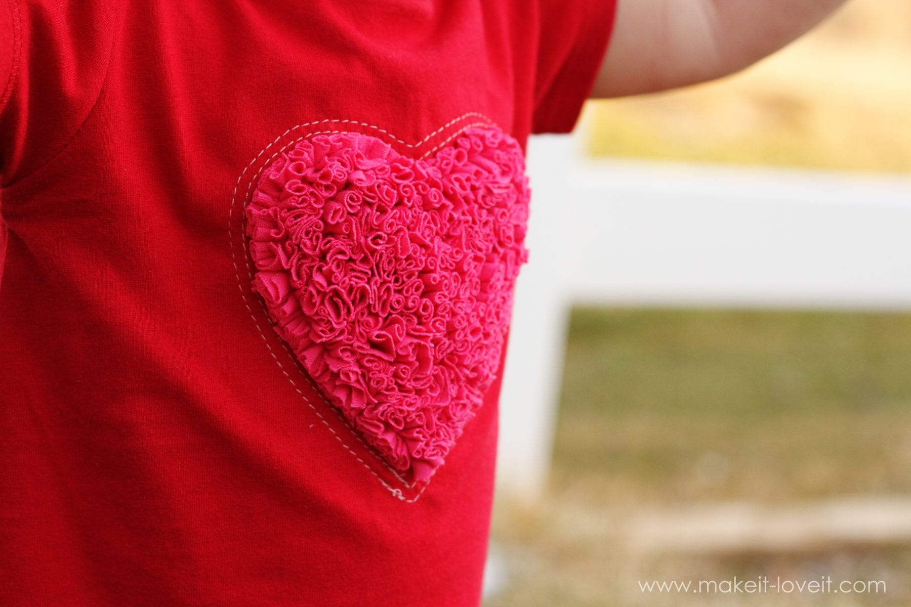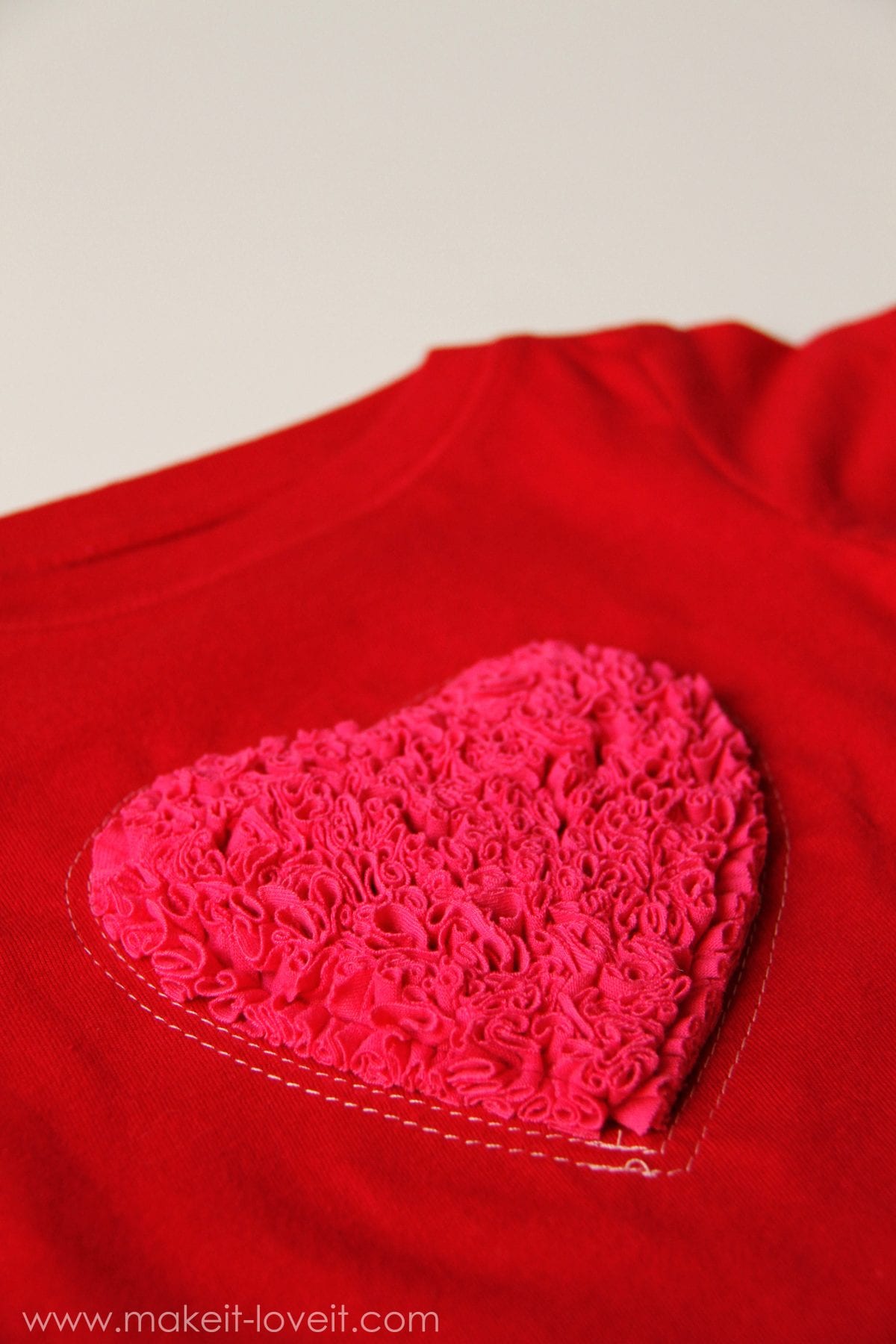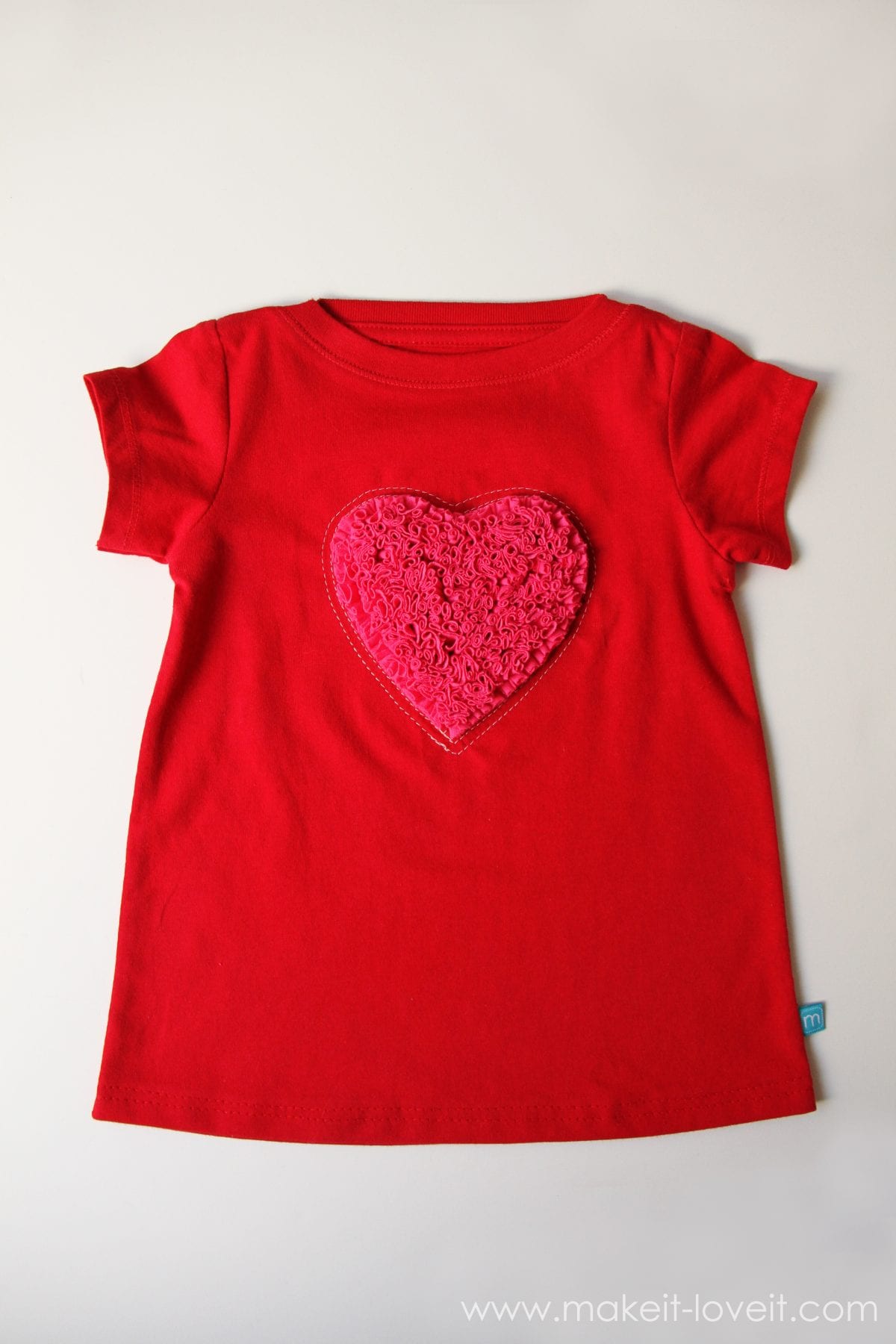 Okay, one more Valentine’s idea for kids clothes.  You know I still have some pink and red shirts to finish recycling……so I need to put those to good use.  Right? ;)  Oh, and I also have one more little baby girl to attach some Valentine love to.