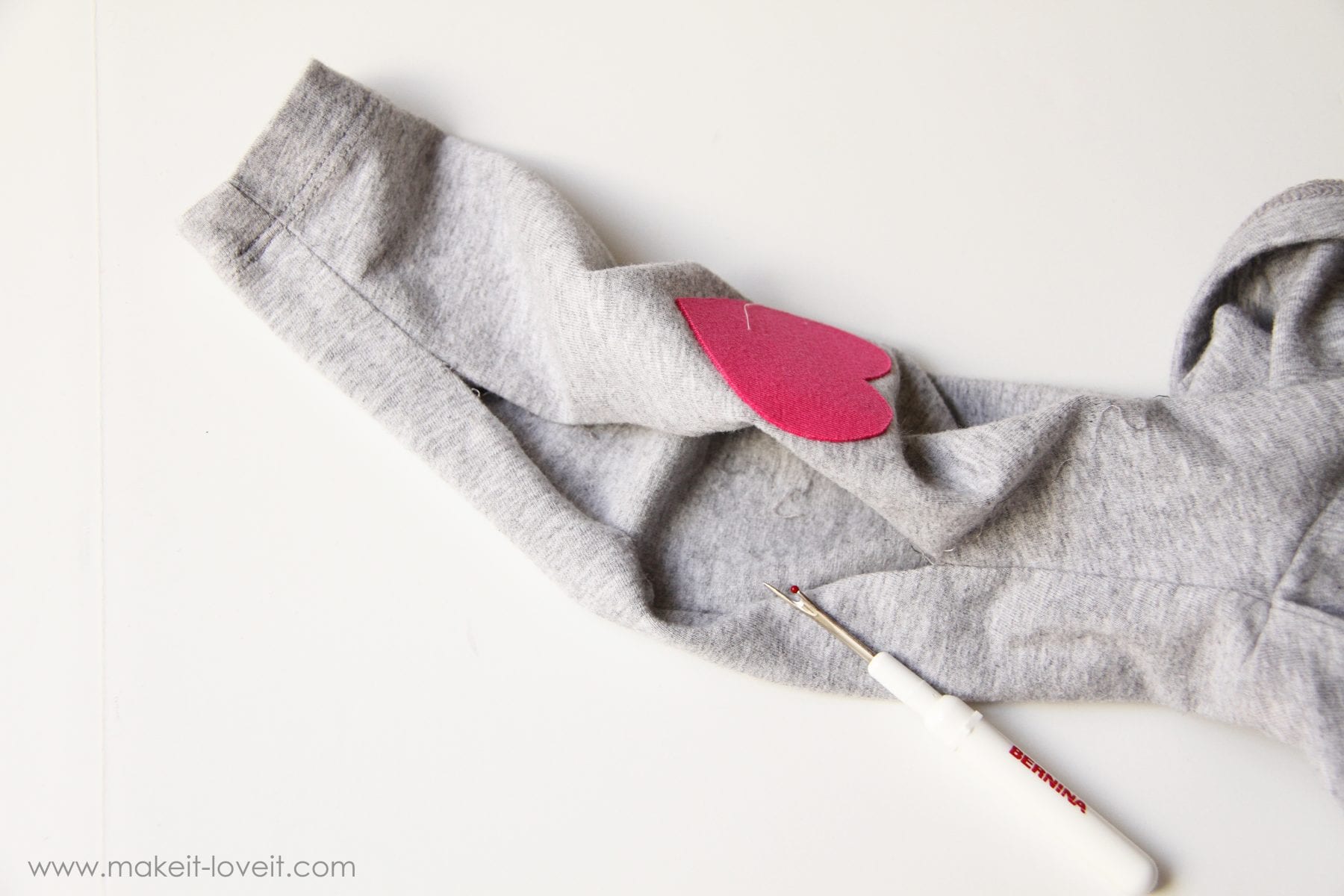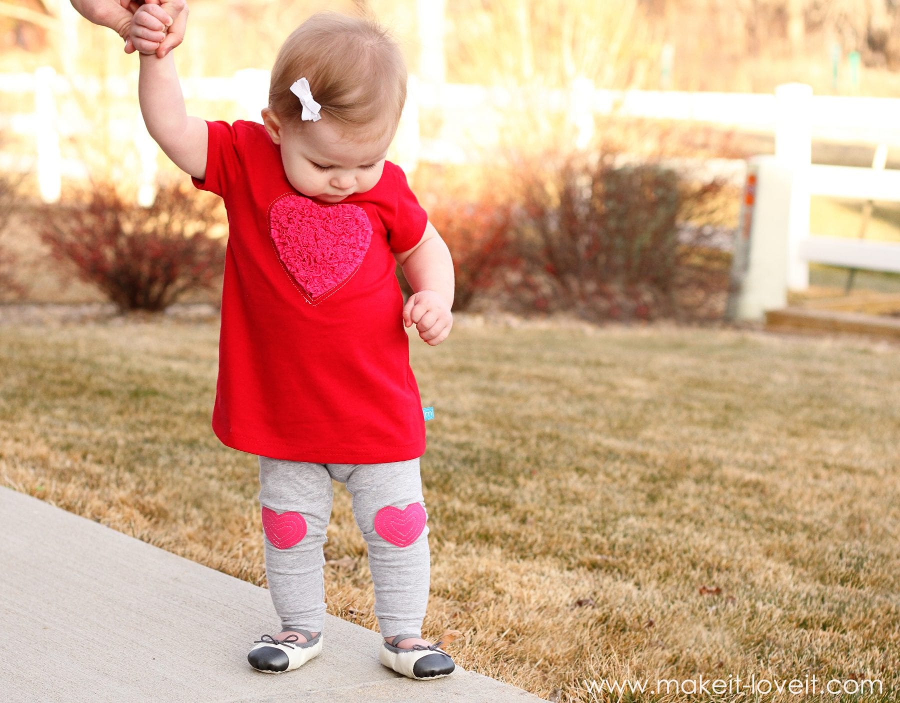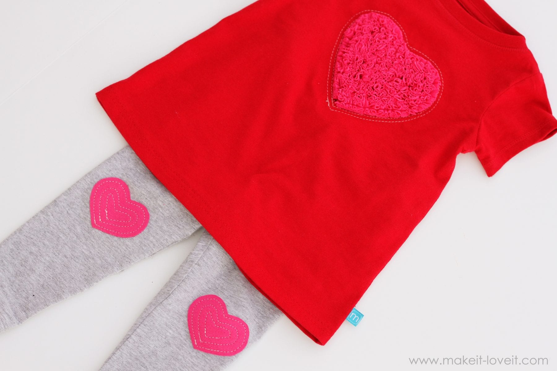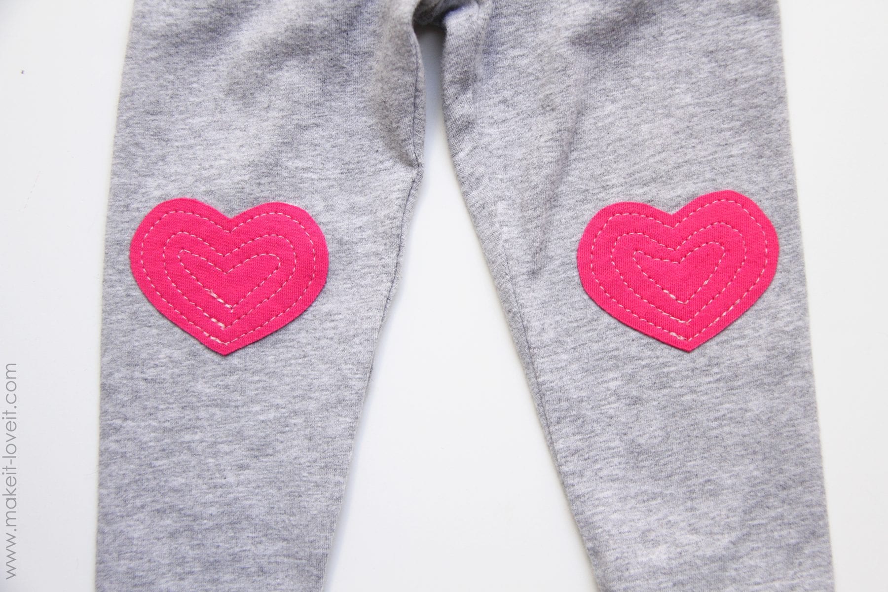 Now, if you want to make the leggings with the heart knee pads…….you can either use a pair of leggings that you already have (like I did with these) or you can make your own pair of leggings like I did here.  Either way works.