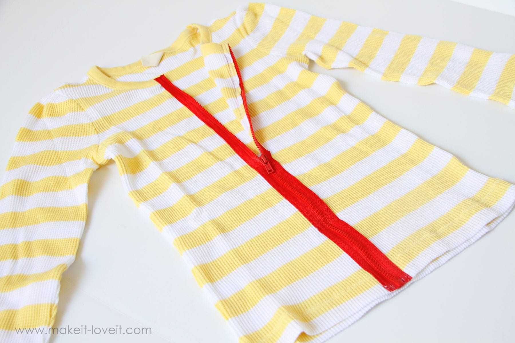 Then, unzip the zipper and cut right down the center of the shirt.