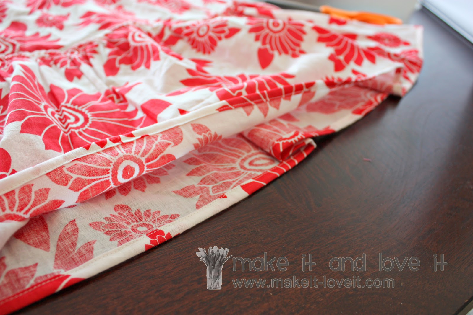 Then fold over the bottom of the skirt a 1/4 inch, then another 1/4 inch, then sew into place.