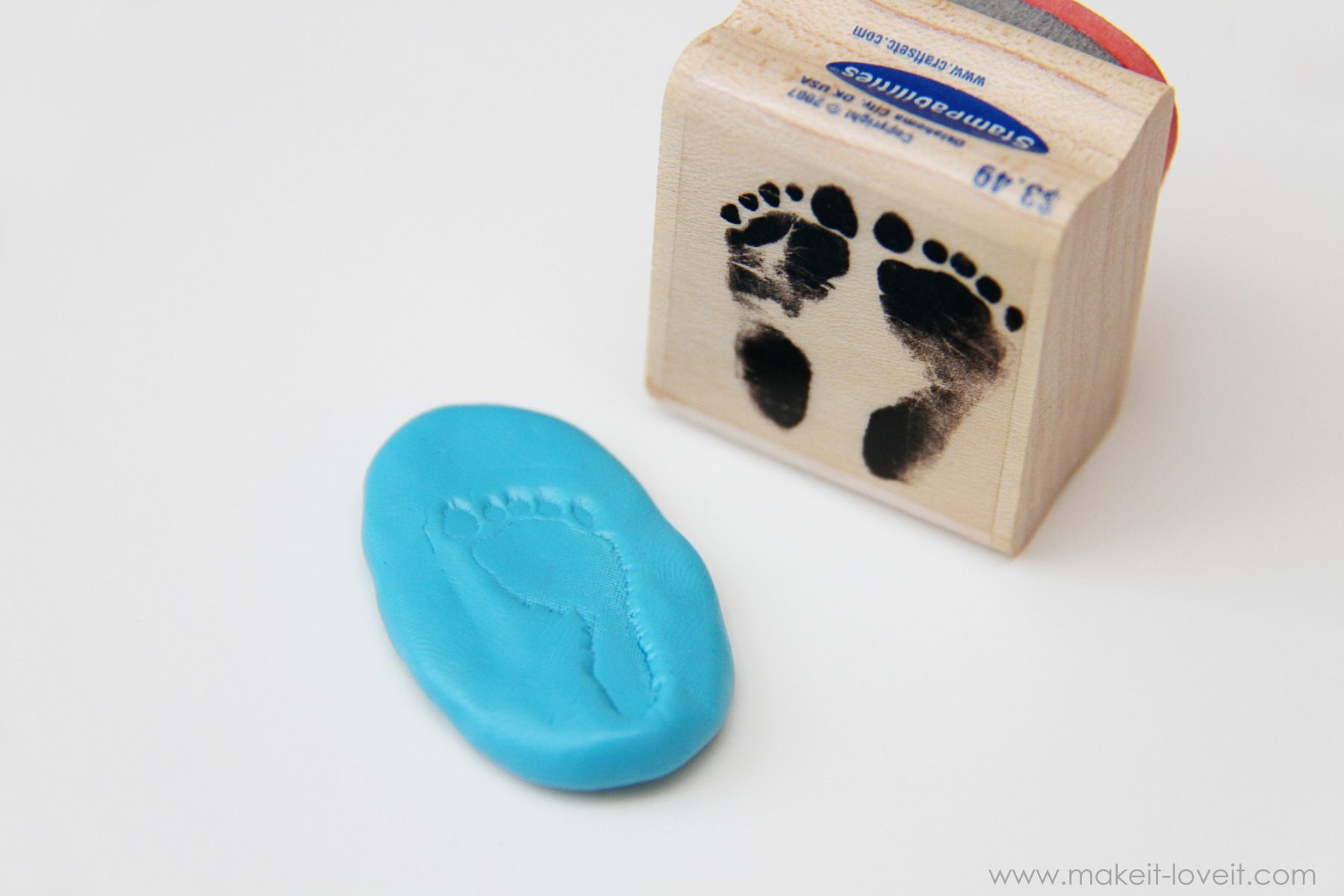 So, after you decide which stamp you want, go on and press it in. This clay is not super soft so you’ll have to use some pressure but not too much because you don’t want it too deep either. (And if you mess up, squish up the clay and try all over again. No biggee.)