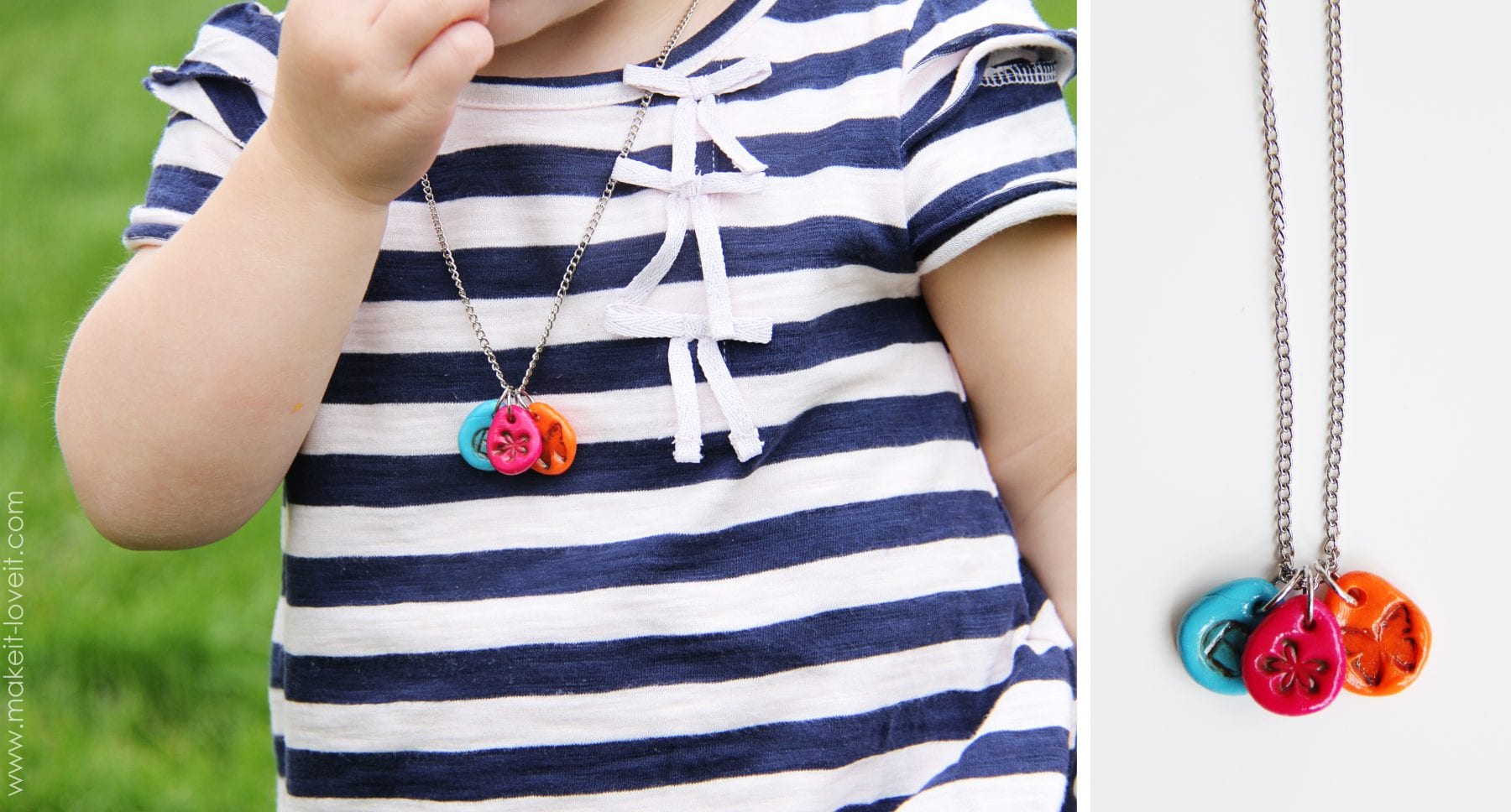 My kiddos are super excited to make some later this afternoon. (Because I made all of these in the evening after the kiddos were in bed. They just saw the results.) Connor wants to make some cool figurines and animal shapes and Elli is dying to add more charms to that necklace on the left. I told her that they are all interchangeable and she’s beyond excited. Wouldn’t it be fun to let the kiddos make some for friends’ birthdays?!?! Especially if they’re not perfect and are obviously kid-made? I love it already.Â