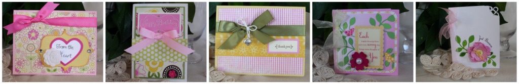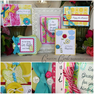 She is giving away her most recent kit, September…..complete with the supplies to create all 5 cards shown below.