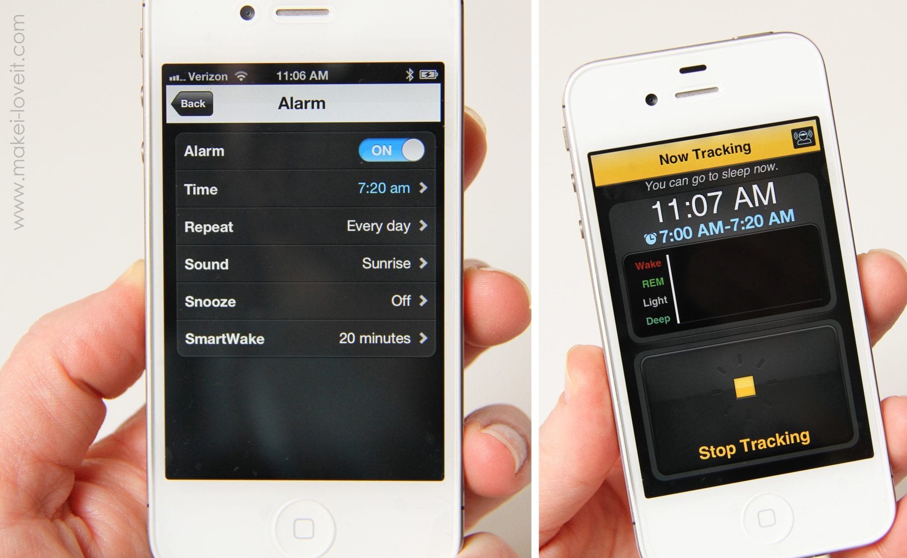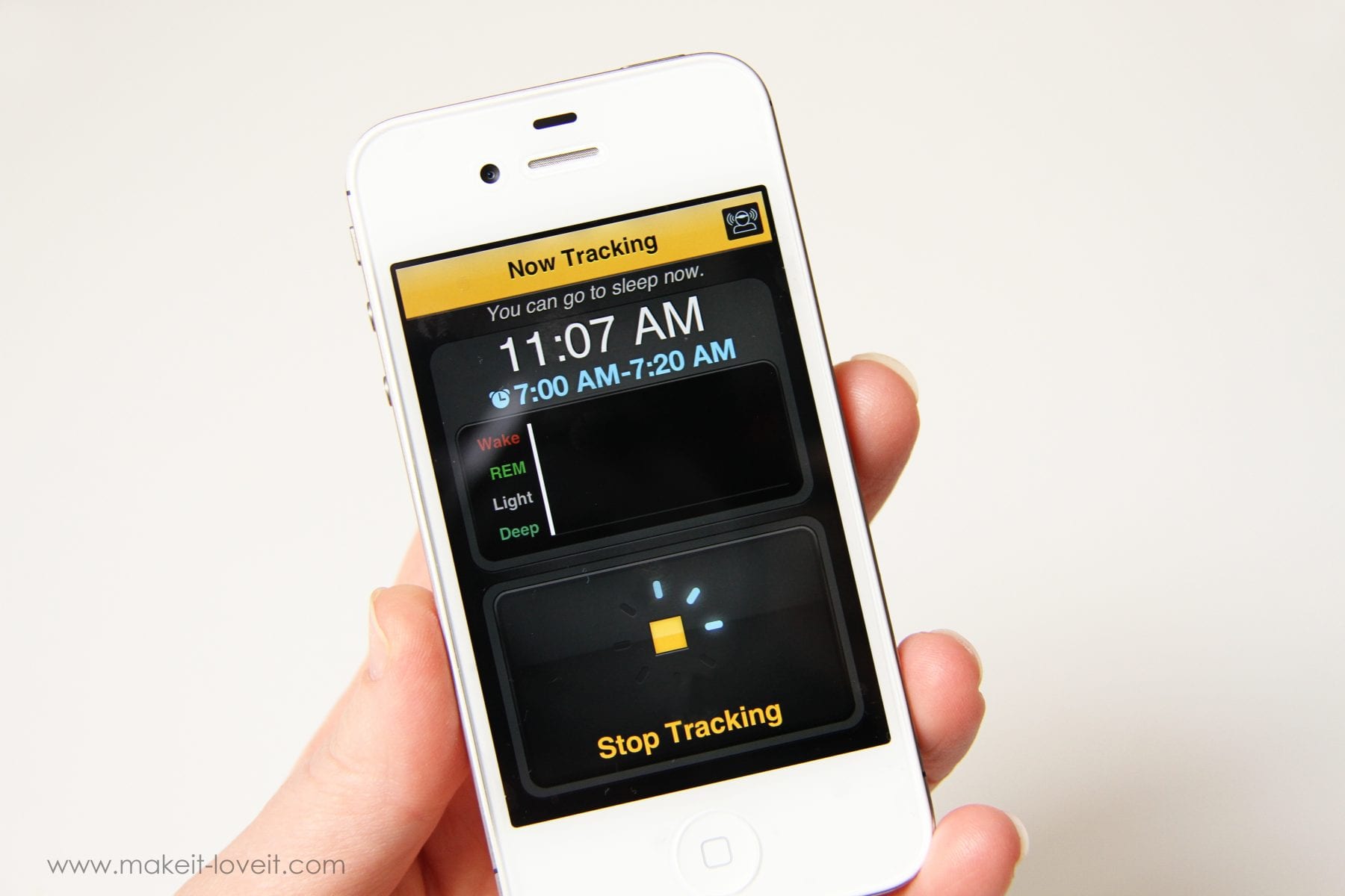 So once I was past the weird idea of having a headband on all night, I was all ready to test this little gadget out. (But yes, still leery.) I downloaded the free Zeo App to my iPhone (it took 2 seconds and is available for Droids, too) and then synced the two together. I didn’t have to fuss with it much because the App is very simple and self explanatory. Once I took the headband off its charger, my phone recognized it and told me to place it on my forehead, and then to click on “start tracking”. So I obeyed. Ha. :) Seriously easy though.