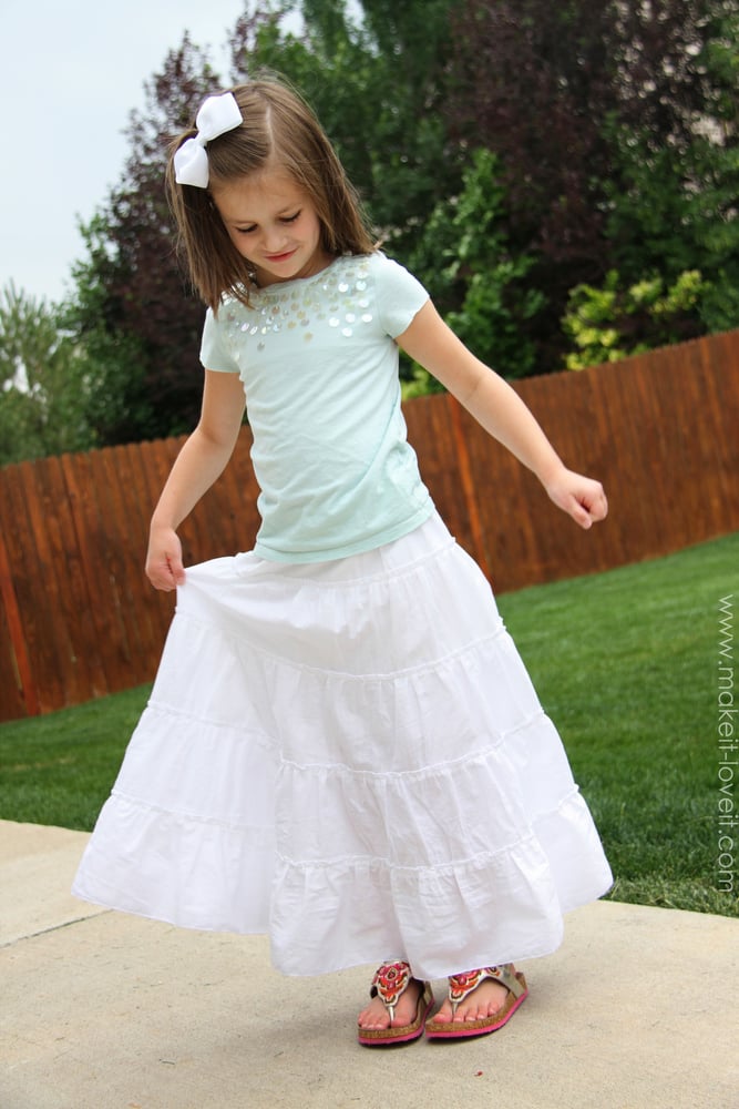 The different rows of tiers can be shortened and lengthened, to make any size skirt. (And yes, I show you how to figure out the measurements, in case you want to make this skirt in your size too.)
