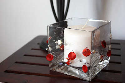 Brave the cold weather (unless you’re in a warmer climate….bless you!) and head outside to visit your local craft store and collect a variety of beads/trinkets/jewels/etc. Add them to very thin jewelry wire (a small gauge) at random or with whatever pattern you’d like and twist to keep them in place. Wrap around a glass candle holder and add candle. Done.