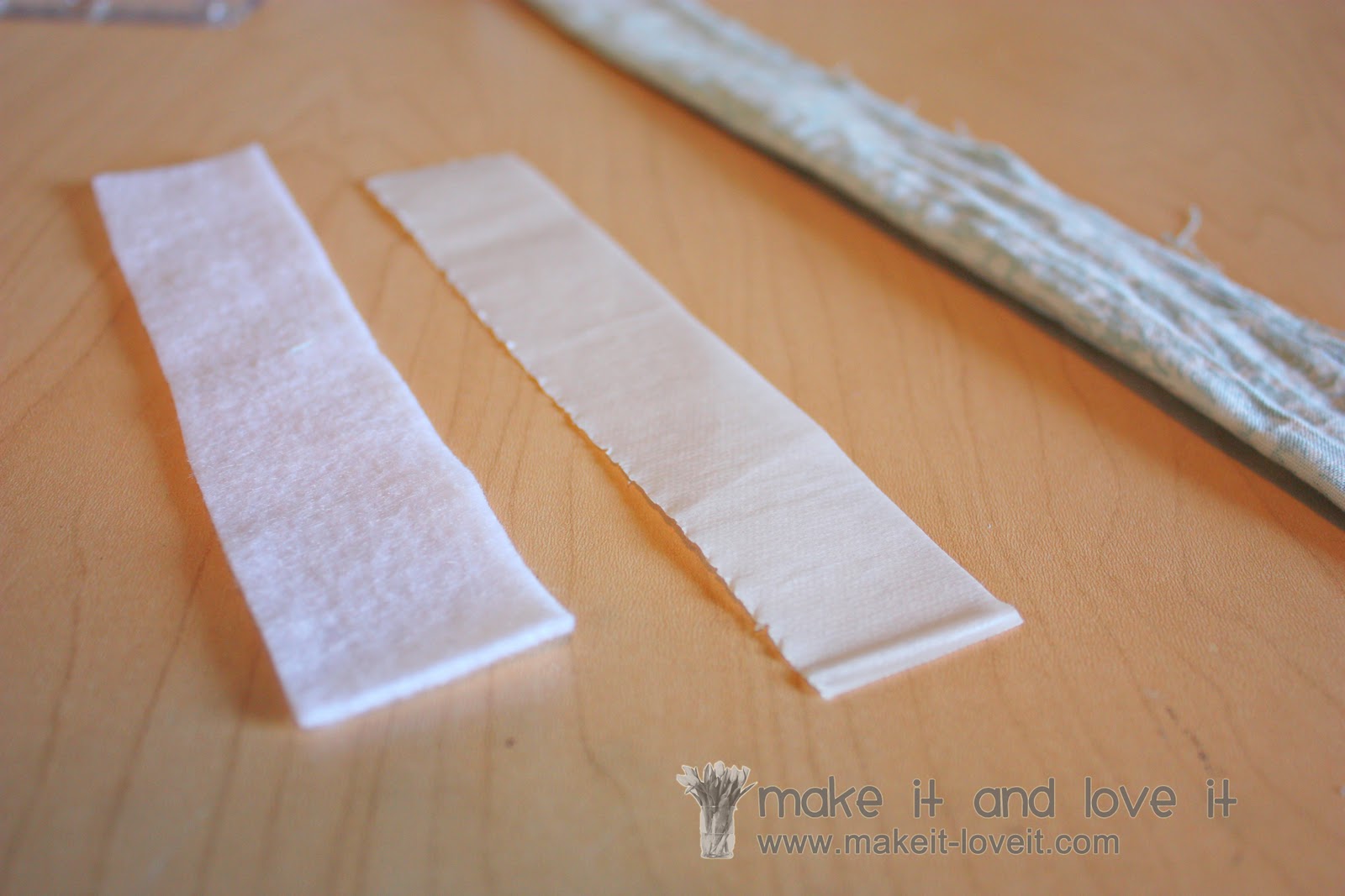 Then cut a piece of felt and a piece of double sided fusible web that are both 7 1/2 x 1 3/8 inches.