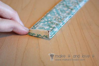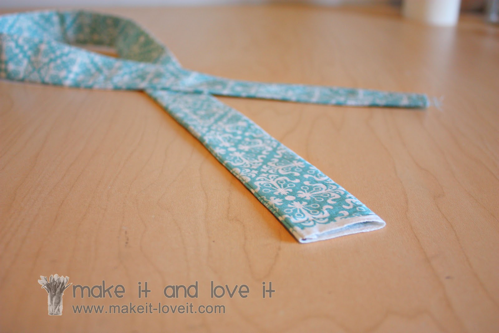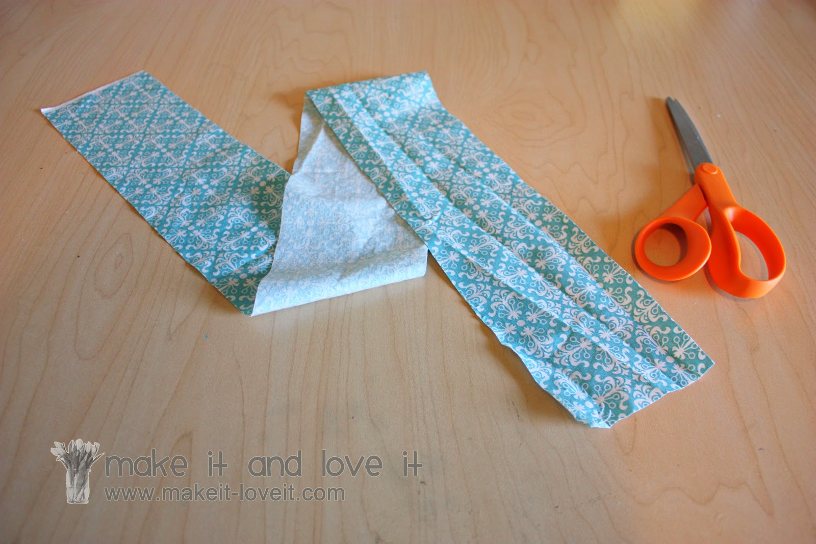 Turn the strip of fabric right side out and iron flat.