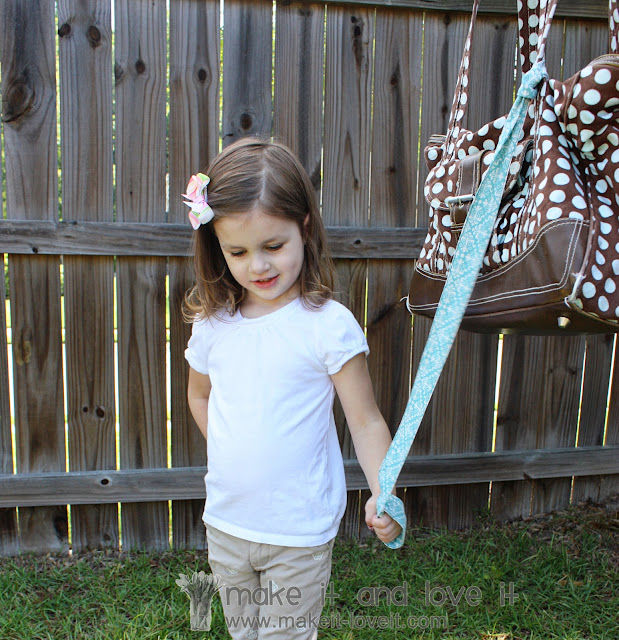 A reader a while back asked if I could make some sort of toddler leash that attached to your purse/bag for a toddler to hold onto. (Sorry, I can’t find the email you sent me…..so thanks to whoever you are!)