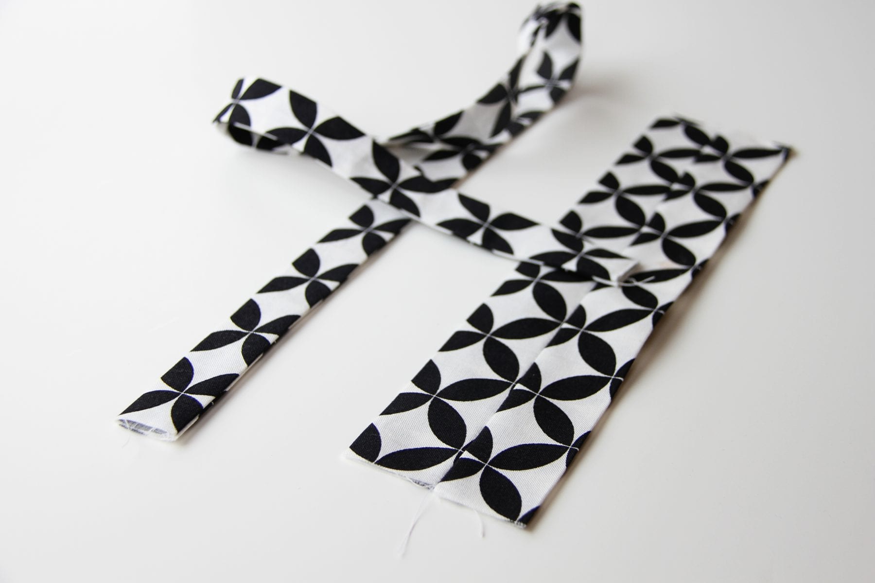 For the bow, I cut a piece of regular woven cotton that was 5 x 10 inches.  The long strip was 2 1/4 x 25 inches (which is used for both bow tails plus the cinch around the bow).