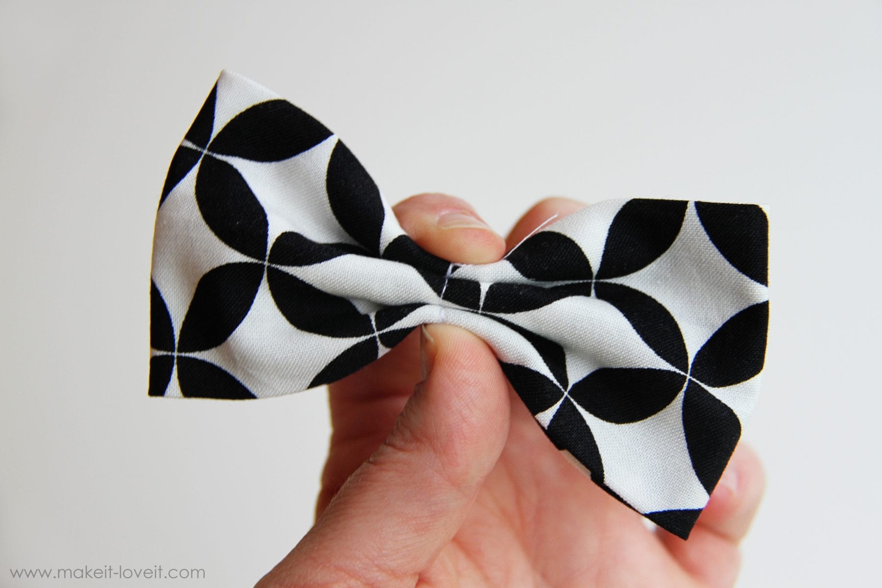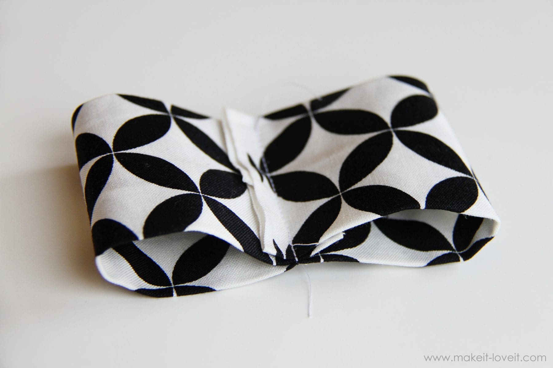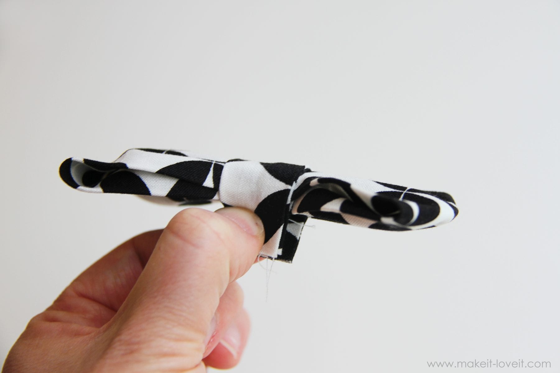 Then pinch the middle of the folded fabric, creating a bow shape.
