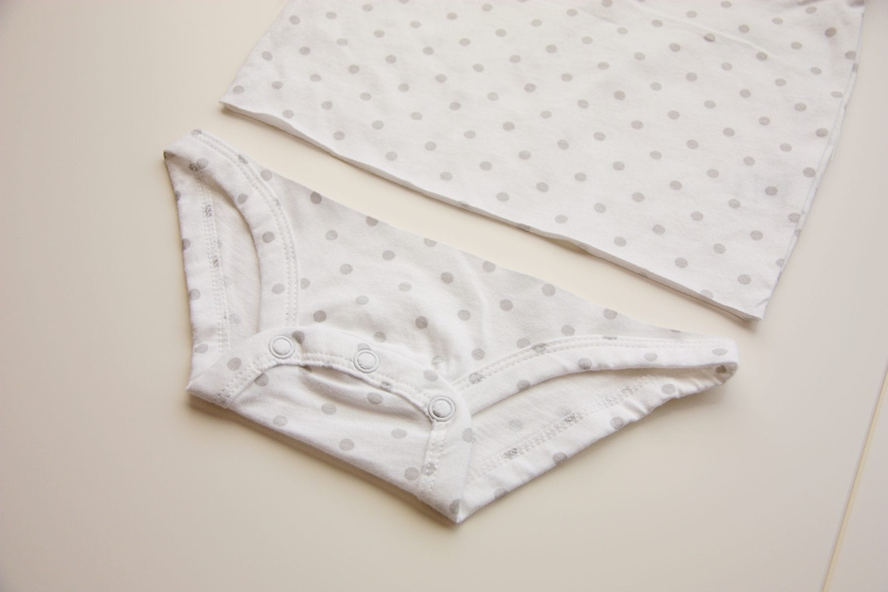 Then decide on the length you’d like and cut the bottom off the onesie.