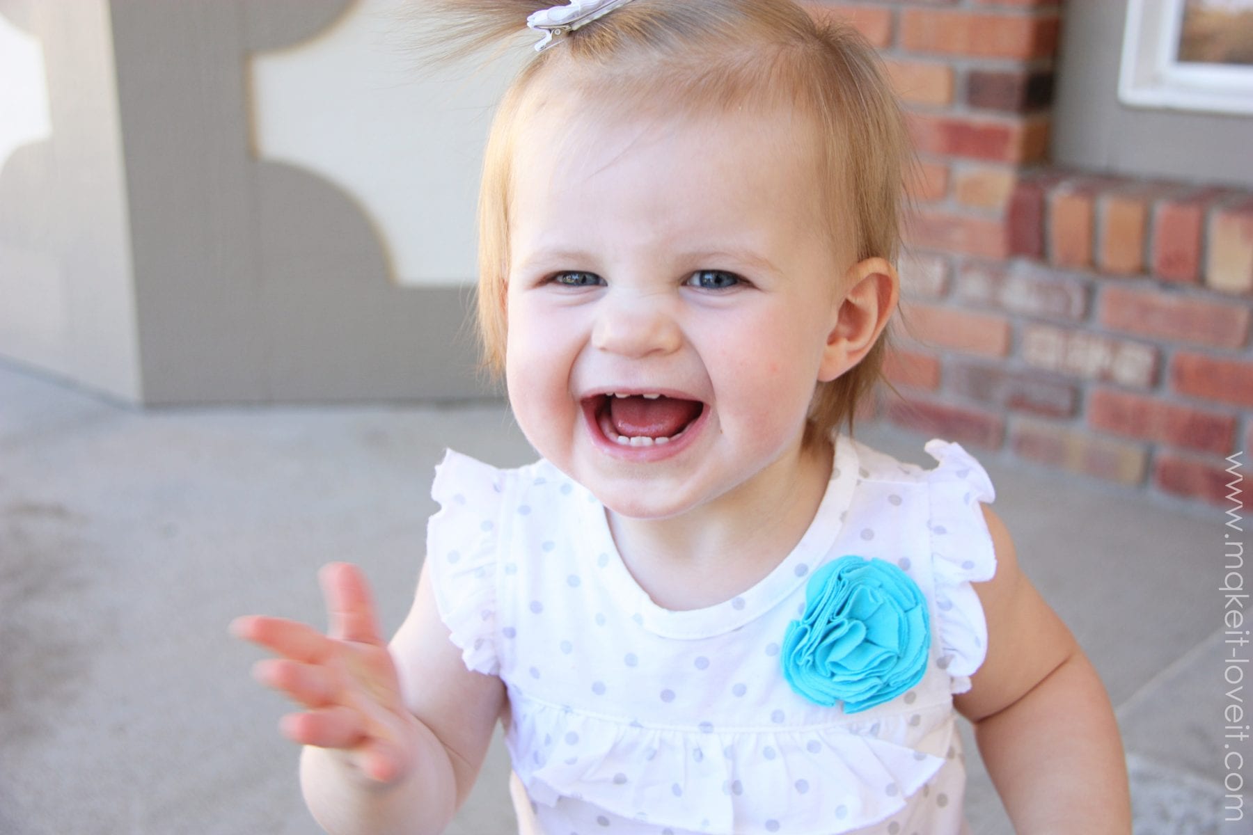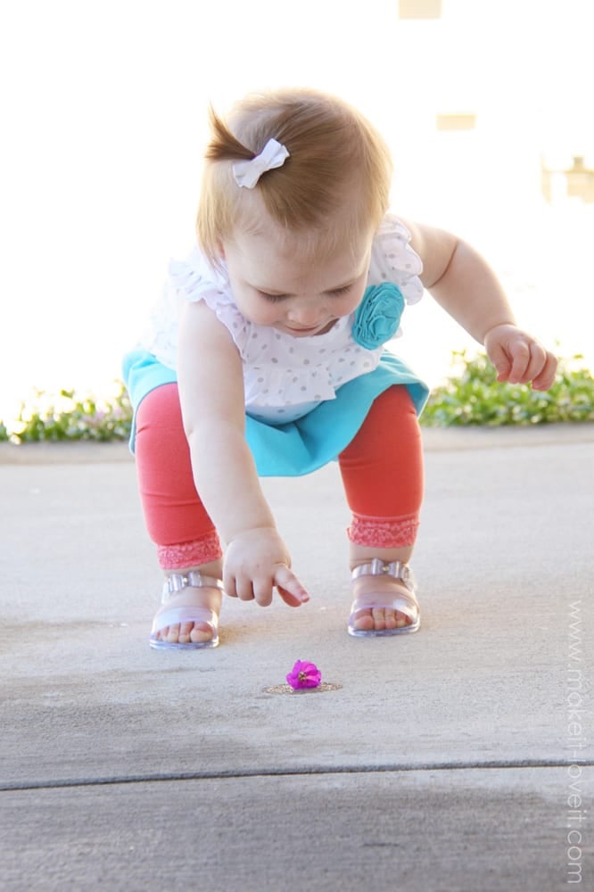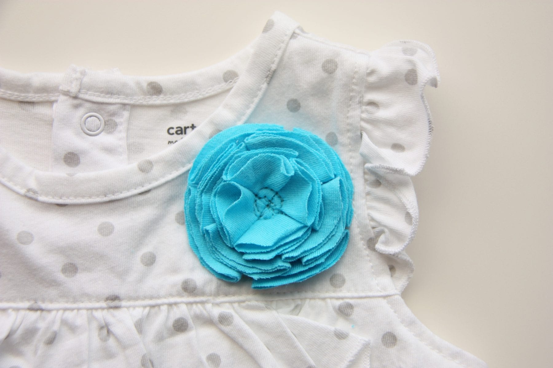 Then, add a flower if you’d like. Just fold up some of the flower and sew the base down to the onesie. (Tutorial for the flower here. I just added 3 layers, not just 2.)