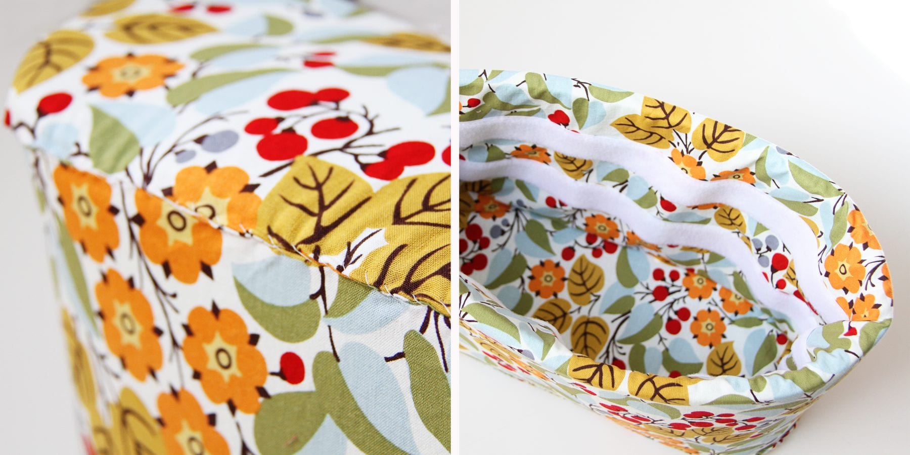 Then, place the bottom together with the circle and pin them in place. Then hand stitch the bottom right to the sides……to keep the pieces together. (Need help with hand-stitching? Click here.)