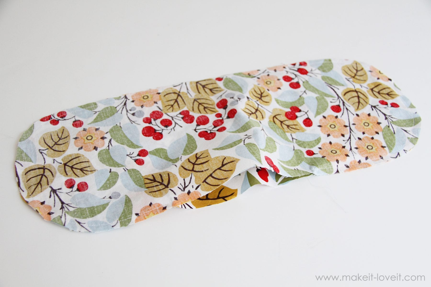 Turn it right side out and put your foam inside. You’ll have to fold it in half to wriggle it in there…..but it will get in there eventually. Promise. :)