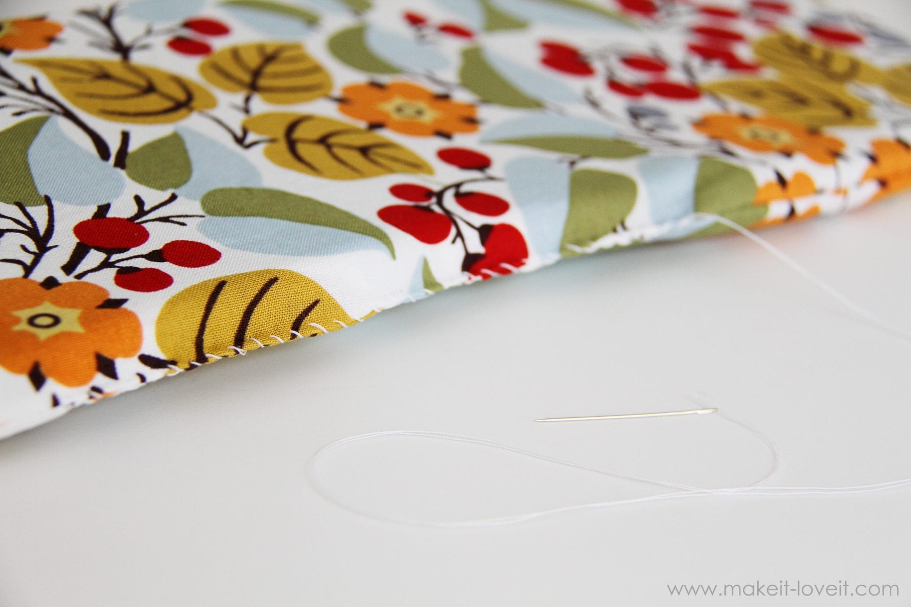 Then tuck the raw edges inside and hand-stitch the opening closed. (Need help with hand-stitching? Click here.)