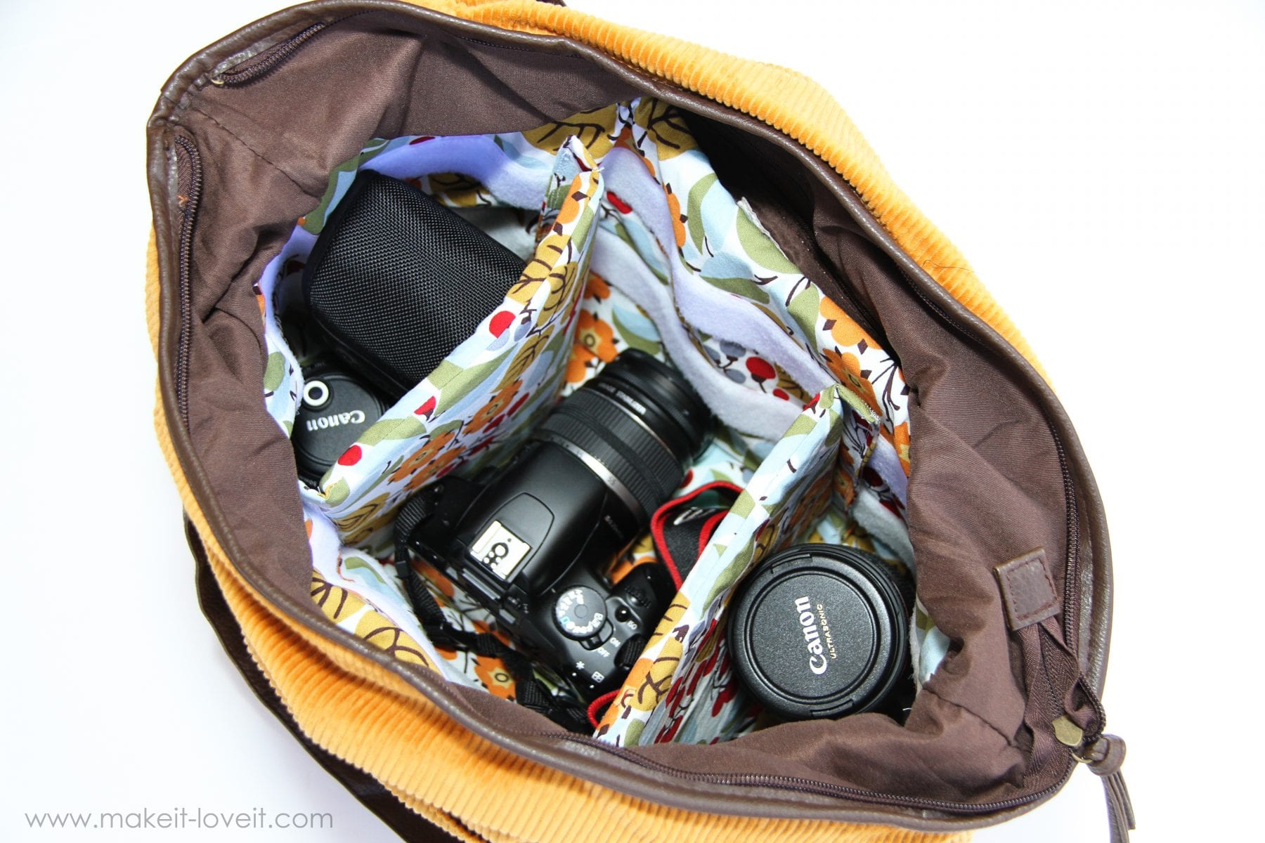 And what’s cool, is that there are little velcro inserts that divide your camera and supplies. And are adjustable so that you can create the right sized compartments for all of your stuff. (This concept is not my own. Many camera bags are made this way.)