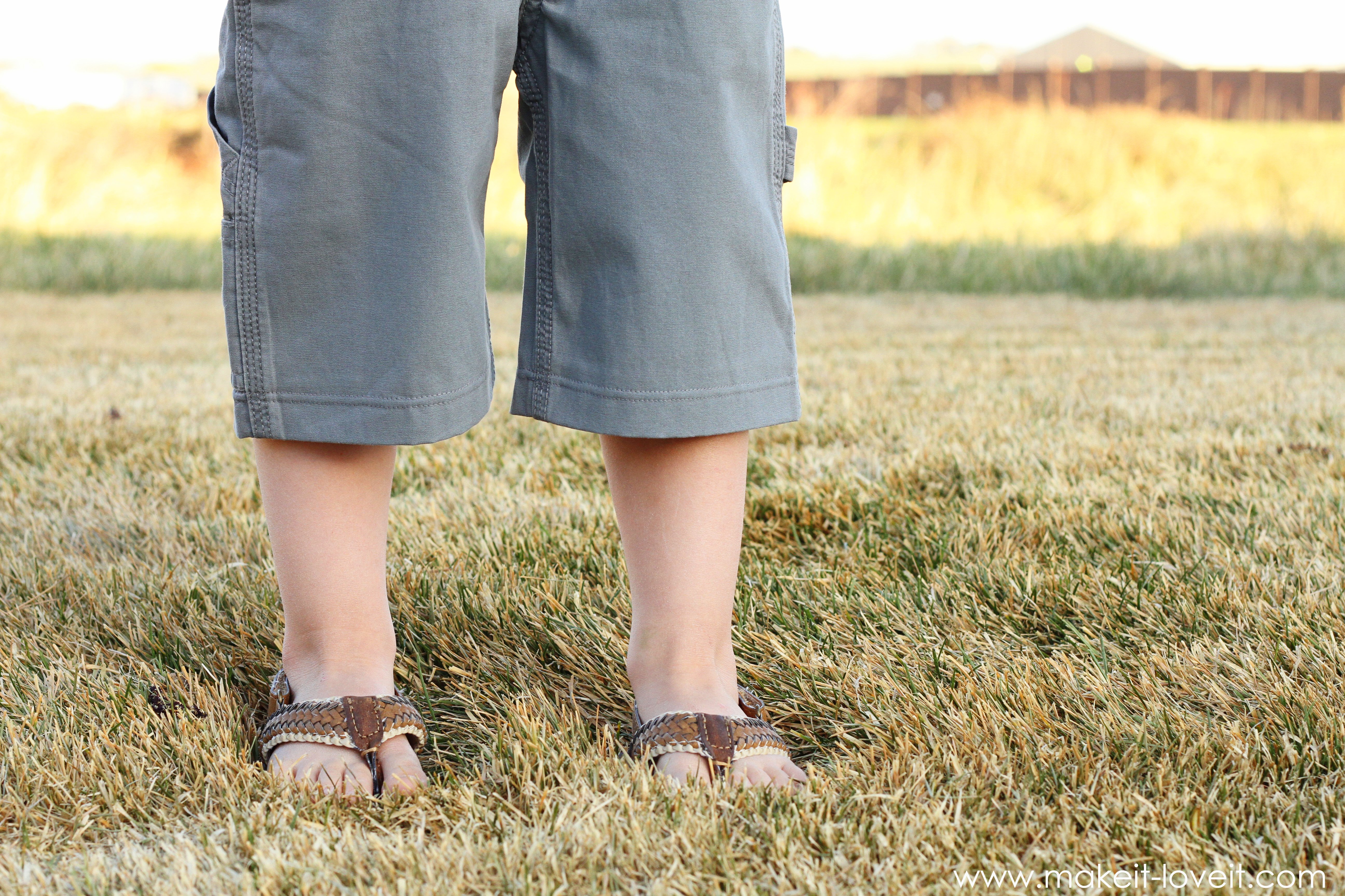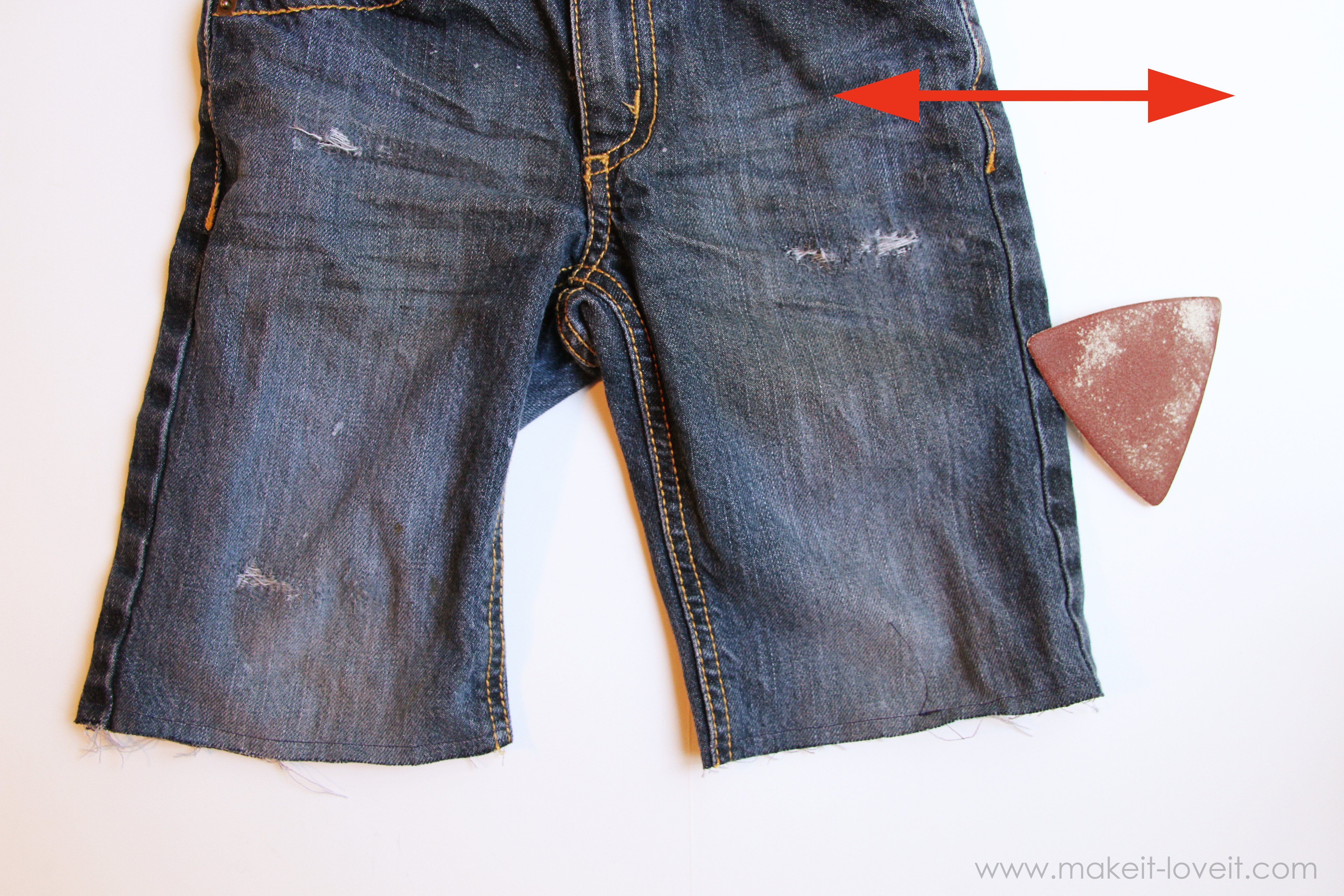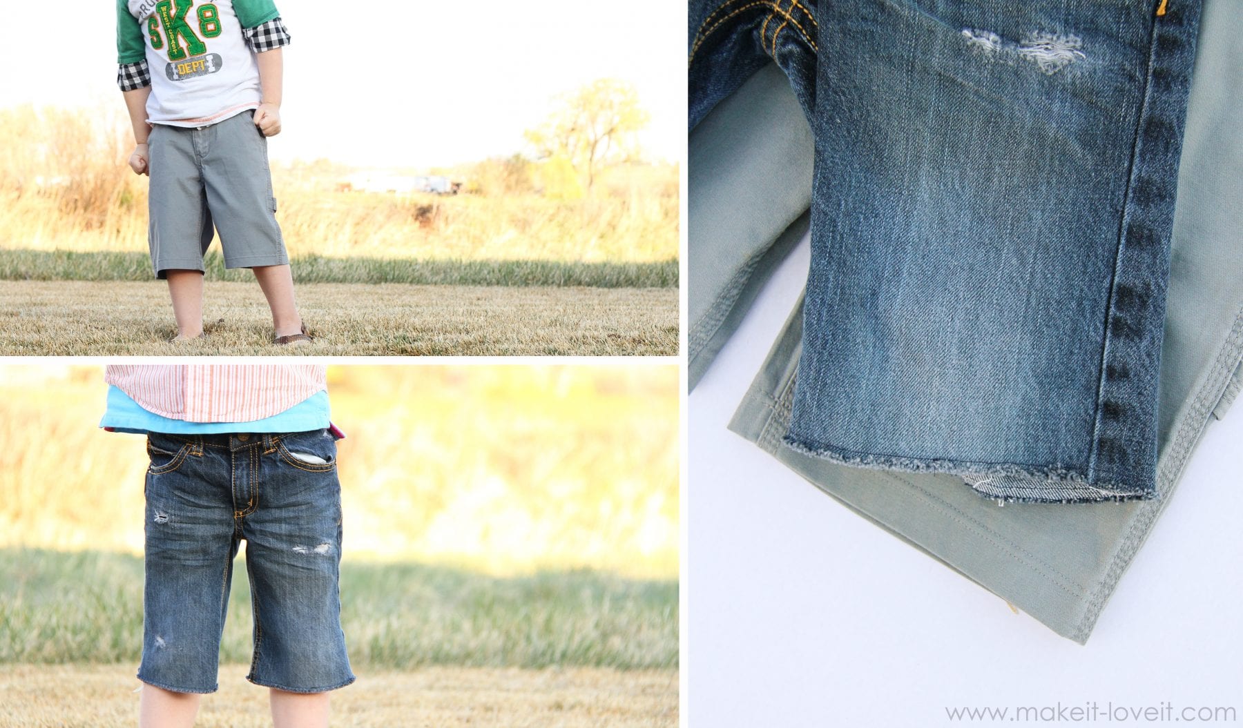 I’m sure you have mounds of long pants with holes in the knees, maybe some pants that are outgrown in length and are now high-waters, or hand me downs that are just now fitting but it’s the wrong season to wear them. Don’t get rid of them…….use them!