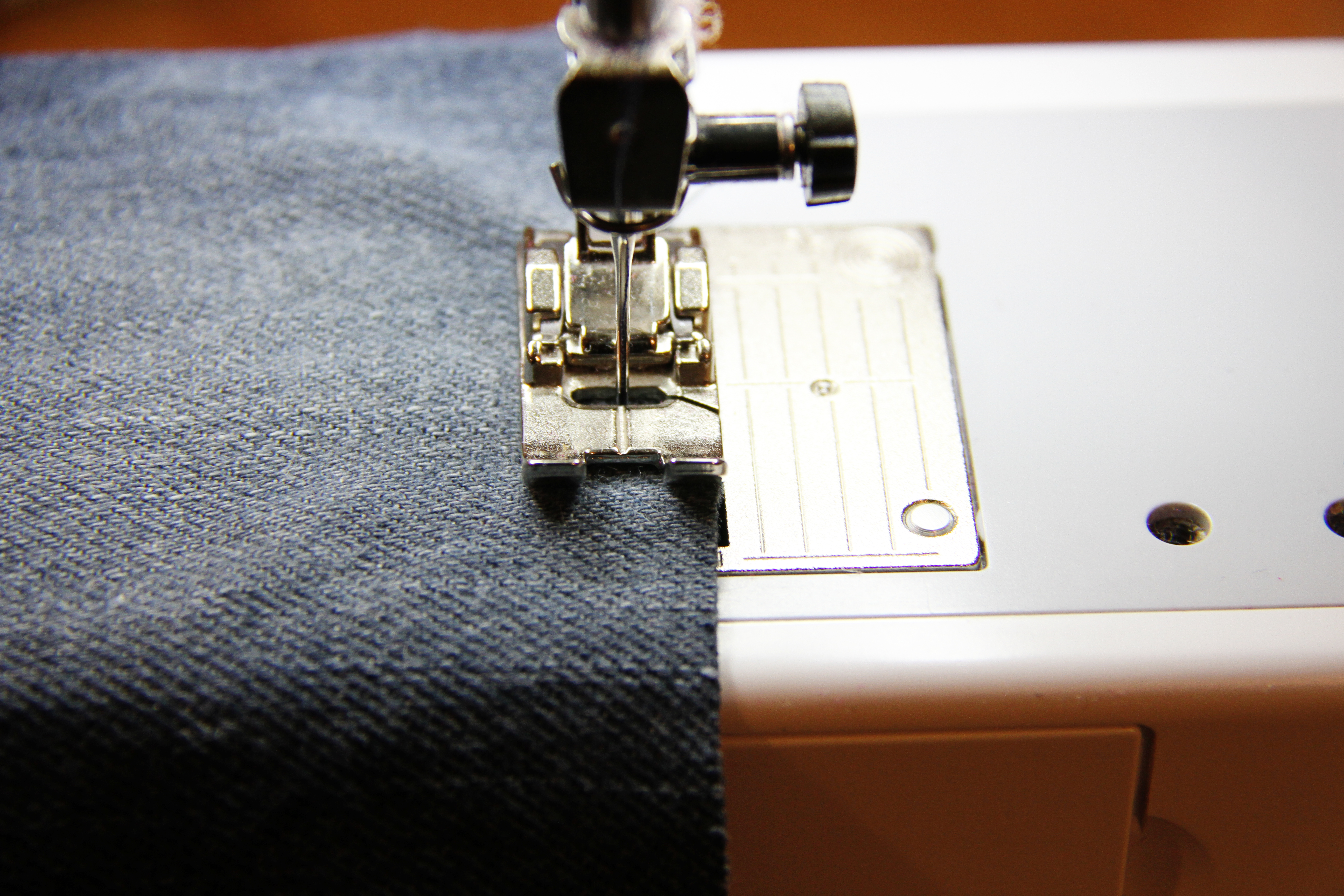 Then, reduce your stitching length a bit. I lowered mine from about a 3 (which is the standard length on my machine) to a 1.5. Using a smaller stitch at the bottom of the jeans will hold the fabric in place where you want it to and won’t allow it to fray past the seam that you make, after lots and lots of washing/drying.