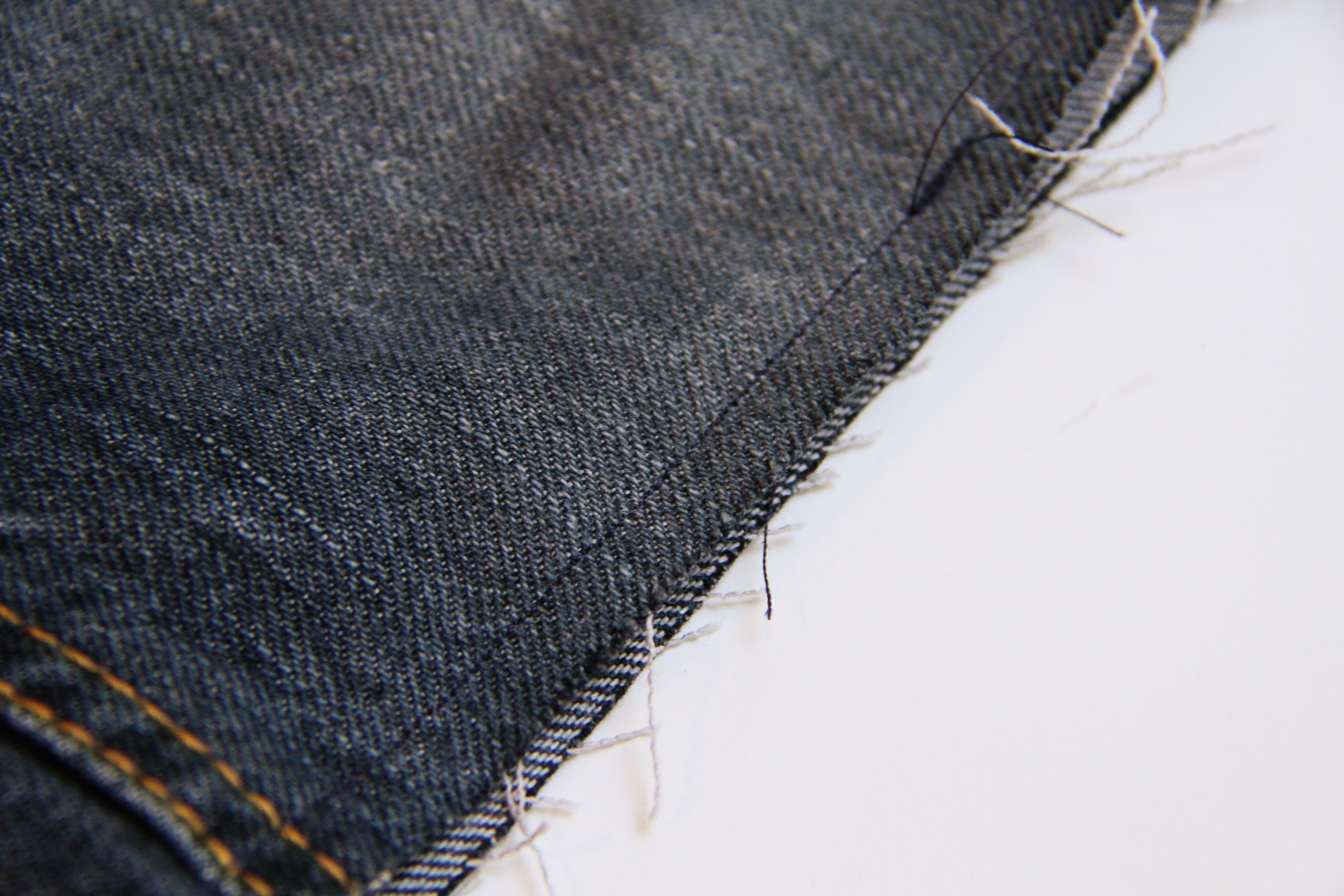Then stitch about a 1/4 inch (or less) from the bottom of the jeans.