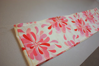 Then, I placed the two pieces right sides together and sewed along the short ends with a 1/2 inch seam allowance. (Then either zig-zag or sew again to secure your seams.)